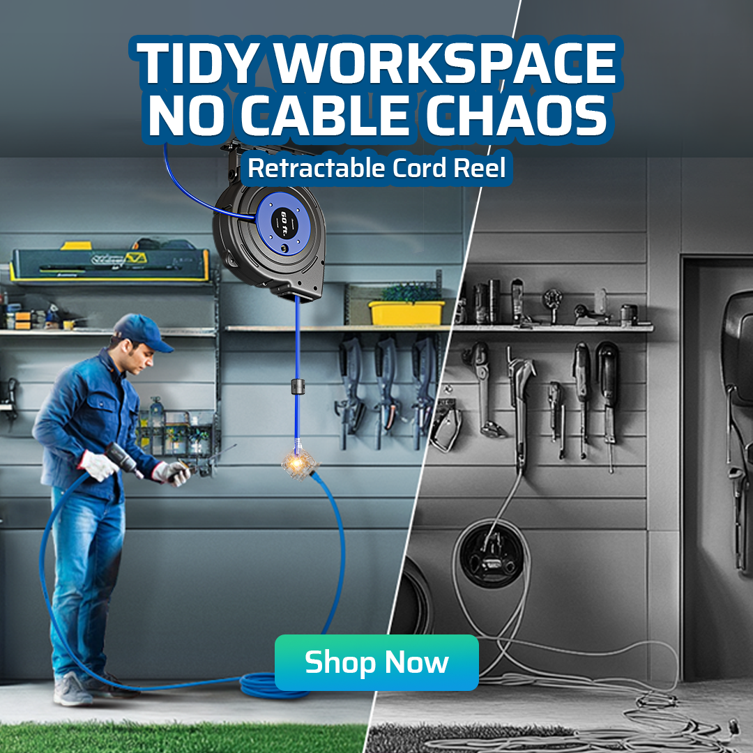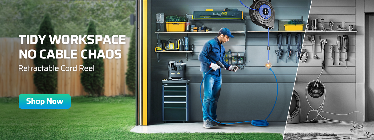 "I mounted a Dewenwils retractable extension cord on the wall of my garage. It was really easy to install."