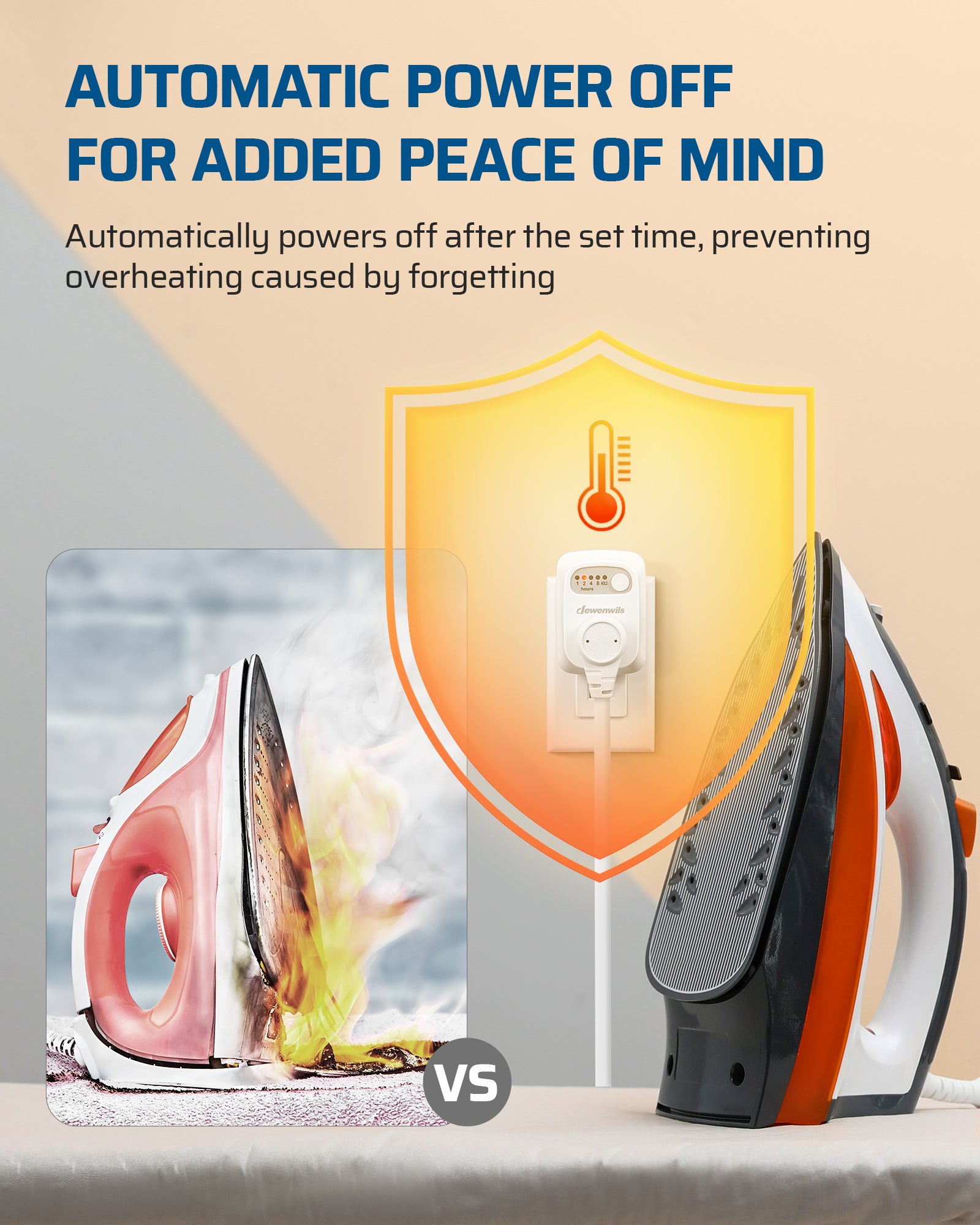 DEWENWILS Indoor Countdown Timer Outlet, Timers for Electrical Outlets, 125V/15A/1000W Auto Shut Off Safety Outlet, One 3-Prong Grounded Outlet, Light Timers, 1/3 HP-HIDT01E