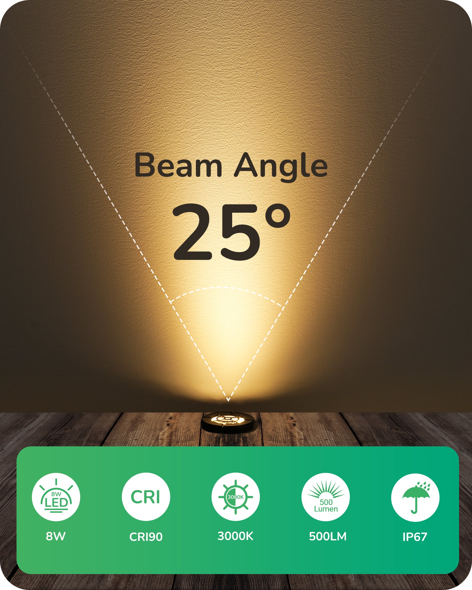 【Upgraded Large Illumination Panel】Enhance your outdoor space with our 3.5-inch large lighting plane, emitting warm white light at 3000K for a cozy courtyard ambiance; with 25° beam angle spotlight effect, this low voltage landscape lights provide a high-quality outdoor lighting experience