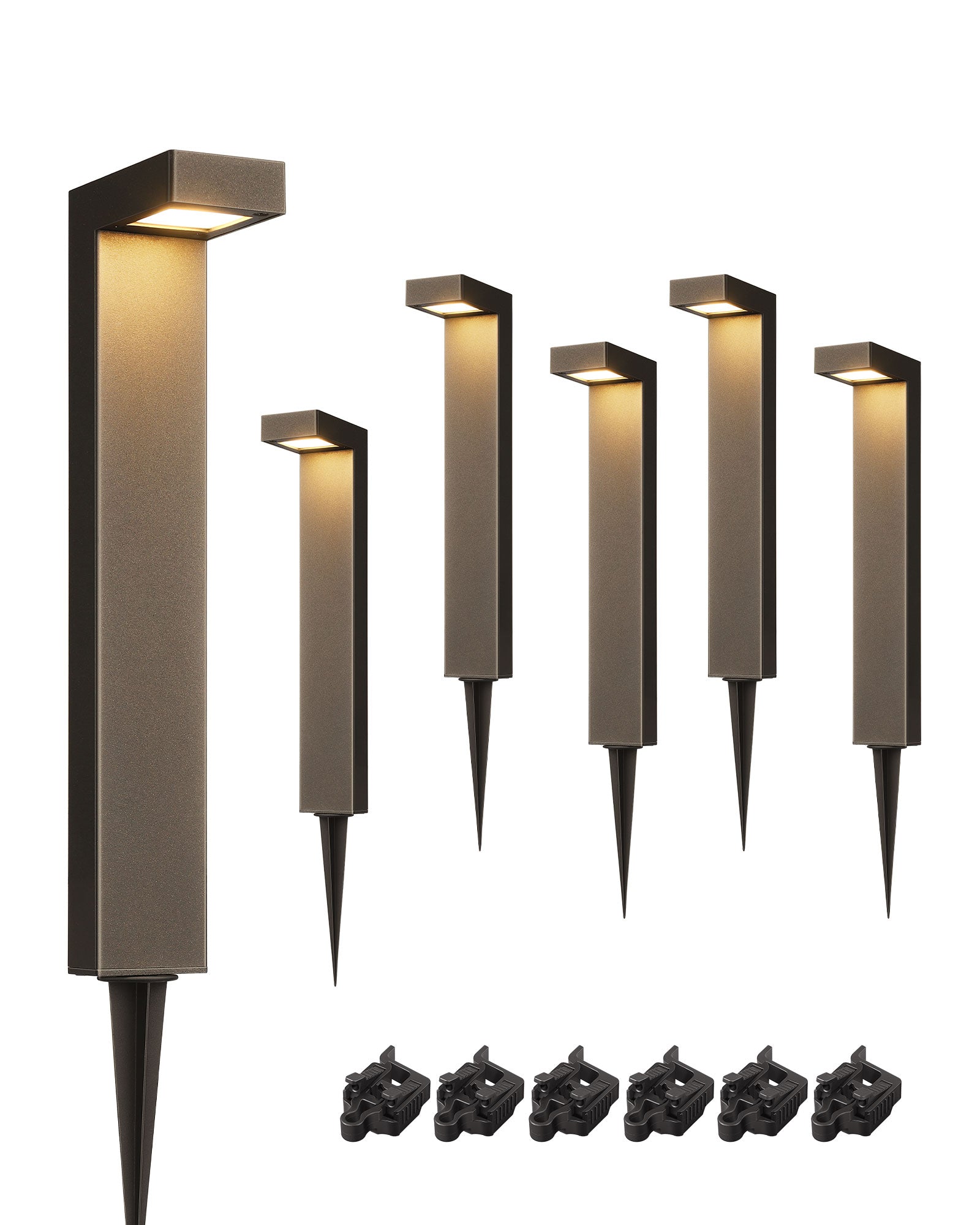 【Larger Lighting Coverage】Offering a 6.4' beam range and 15'' extension cables, these landscape path lights deliver continuous illumination with fewer fixtures; square lamp housing protects the LEDs while directing light downward to expand the lighting area; uniform paint finish and modern appeal enhance your landscape or pathways