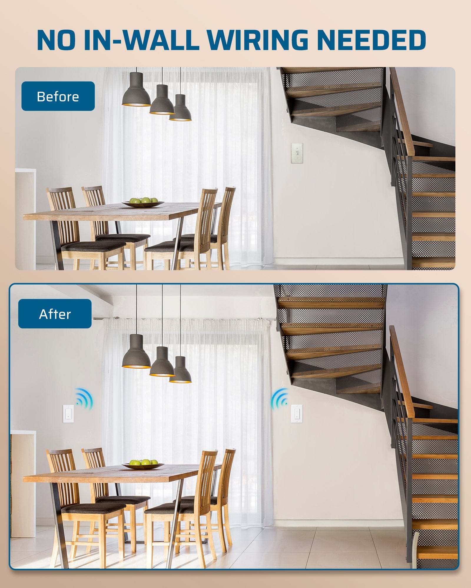 【Wide Application】The DEWENWILS wireless light switch kit and receiver kit are ideal for indoor lighting fixtures, including ceiling lights, plug-in pendant lights, hard-to-reach lights, and other electric appliances. These can be controlled with a simple push of a wall switch. Any grammatical or spelling errors have been corrected.