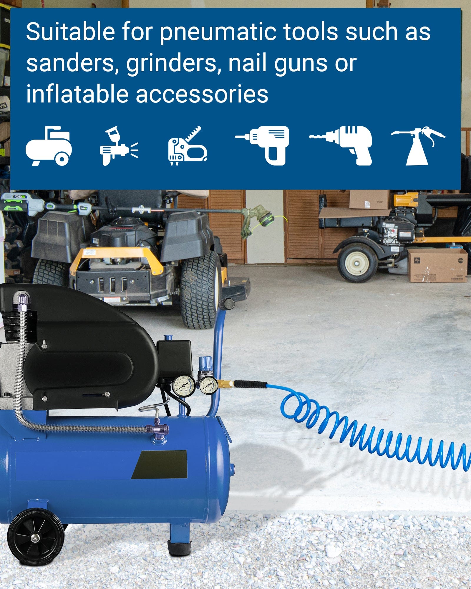 【Space-saving & Wide Use】Say goodbye to kinks and tangles with the automatic rebound, this PU hose quickly and effortlessly snaps back into its original shape, saving space and hassle-free storage; great for air compressors, sanders, grinders, nail guns, spray guns, impact wrenches in garages, factories, auto repair shops