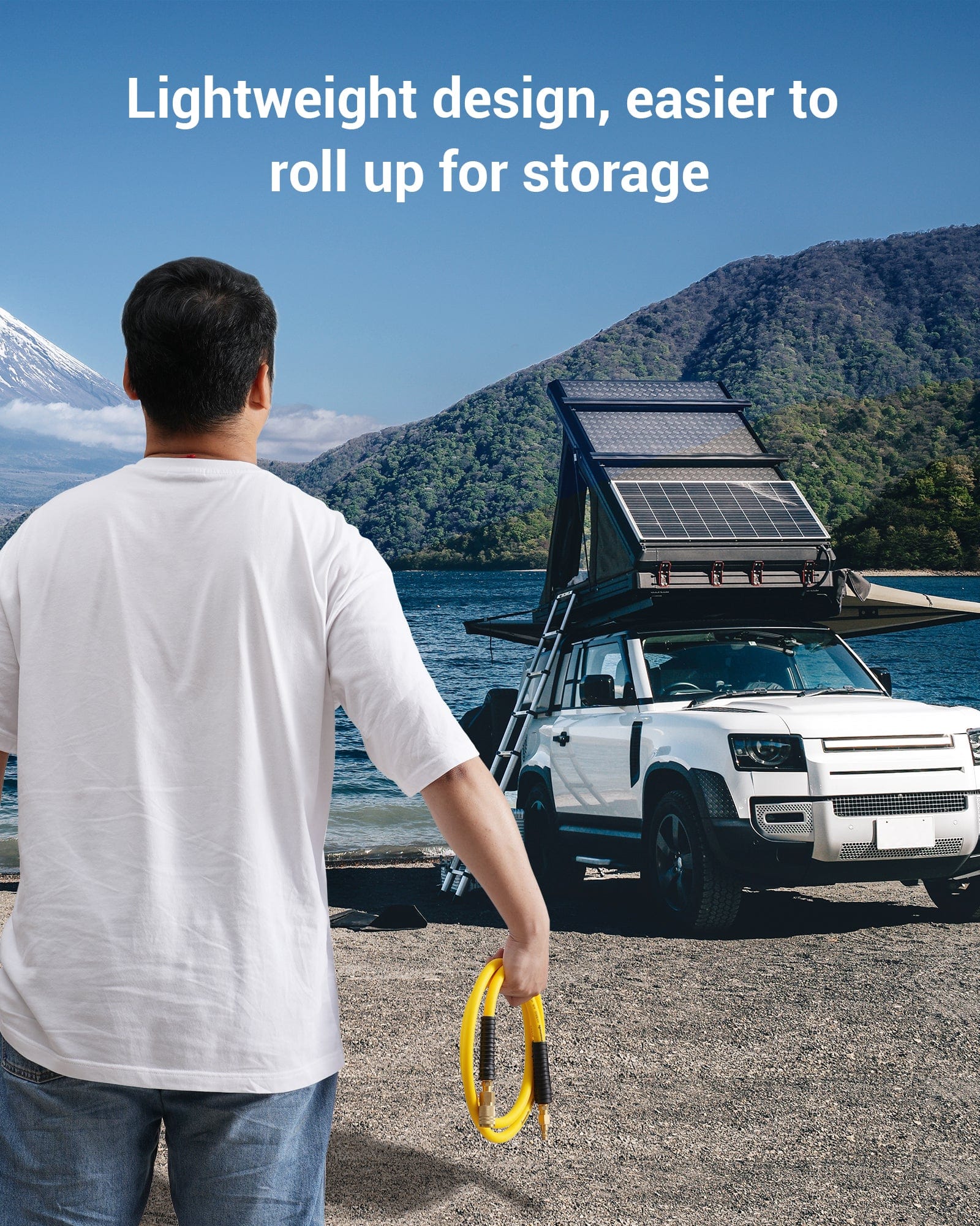 Lightweight than most rubber hoses. Easy to lift and maneuver in the garage. and easy to coil up for storage at hose holder, hook, and reel after being used.