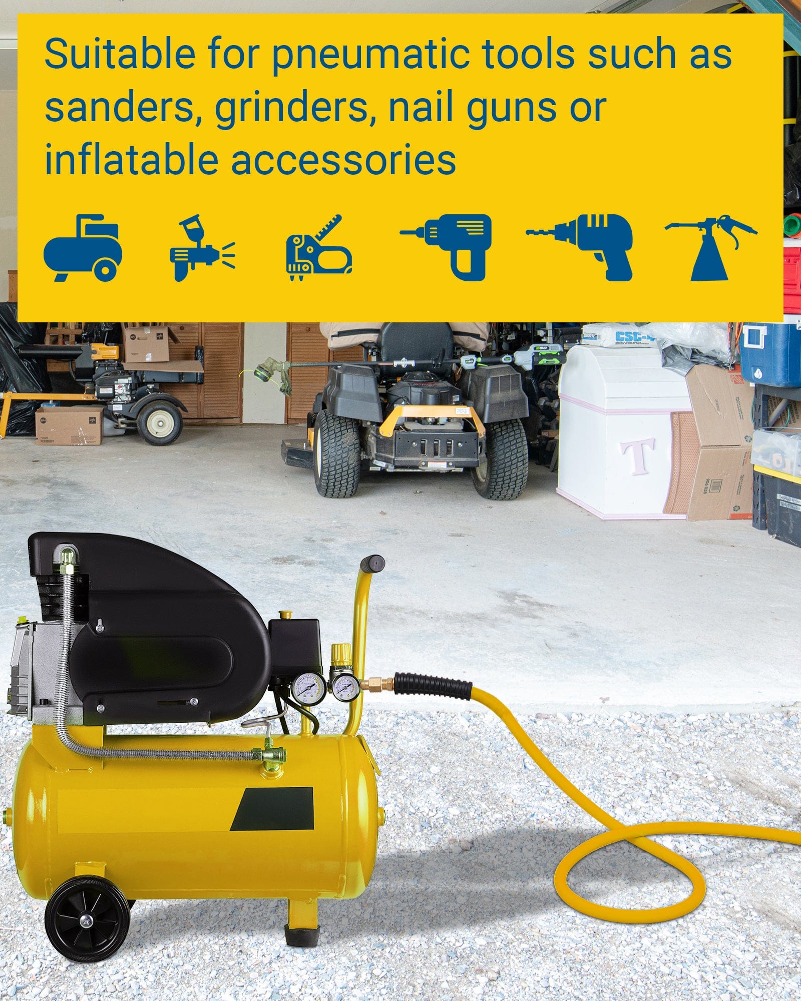 Air hose has a maximum pressure of 300 psi and a burst pressure of 900 psi. Ideal for garages, stores, woodworking shops, workshops, etc.