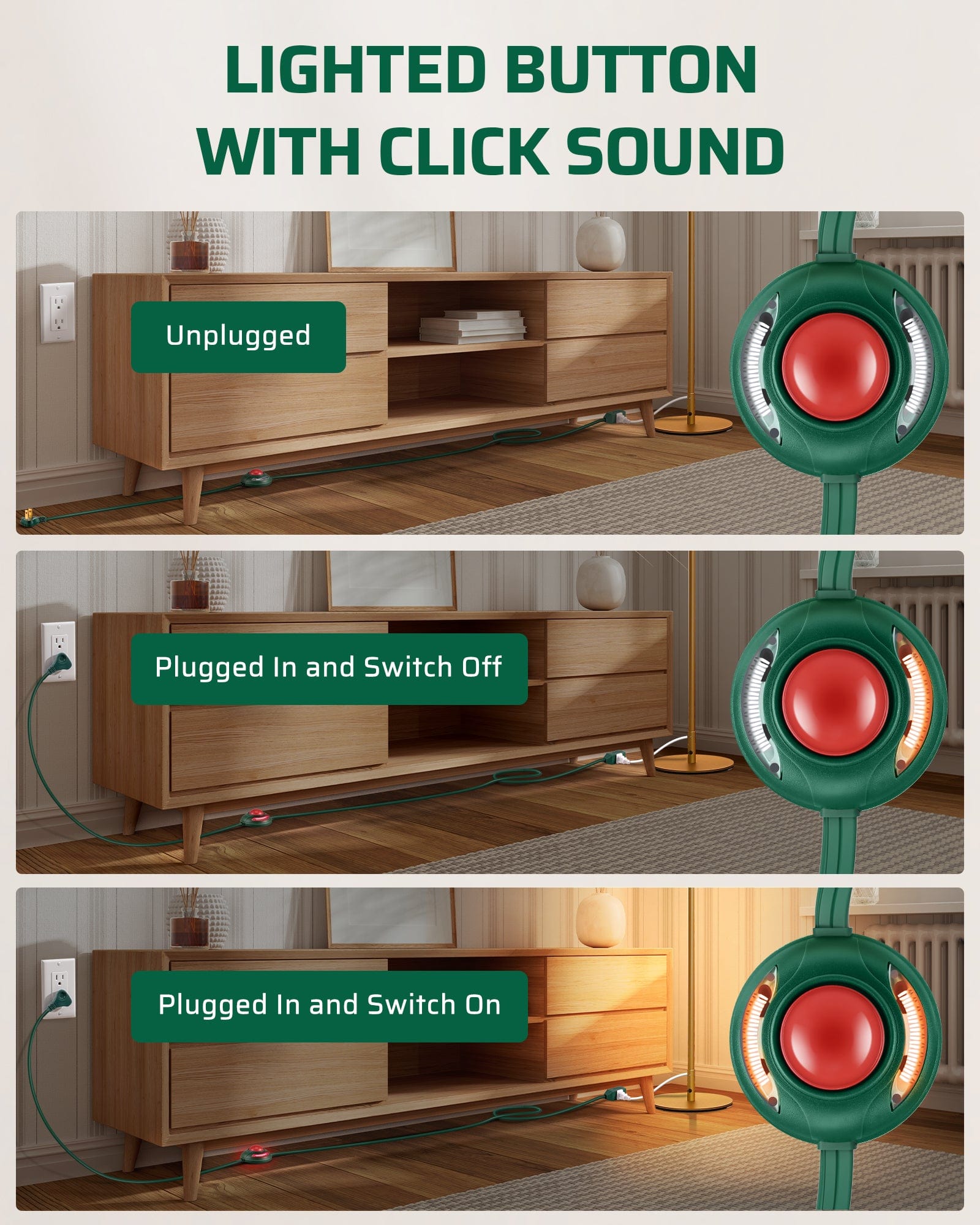 【Easier Extension Cord】Easily turn your devices on and off with a tap of the foot using a foot switch extension cord. Say goodbye to bending over to plug in floor lamps or turn off Christmas tree lights. This is a great solution for accessing hard-to-reach outlets and making your life more convenient.