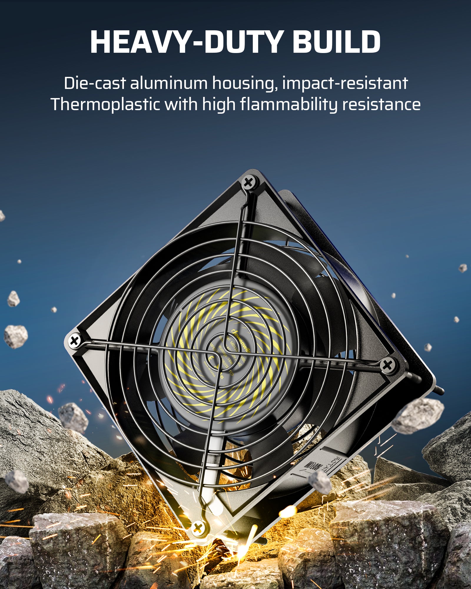 【Advanced Waterproof】Our advanced technology ensures the high quality; the internal parts and blades are coated with waterproof paint, making them resistant to water damage; the body of the 120mm fan is designed to be both anti-rust and waterproof, allowing it to operate flawlessly in high humidity environments; bring you a safe use experience
