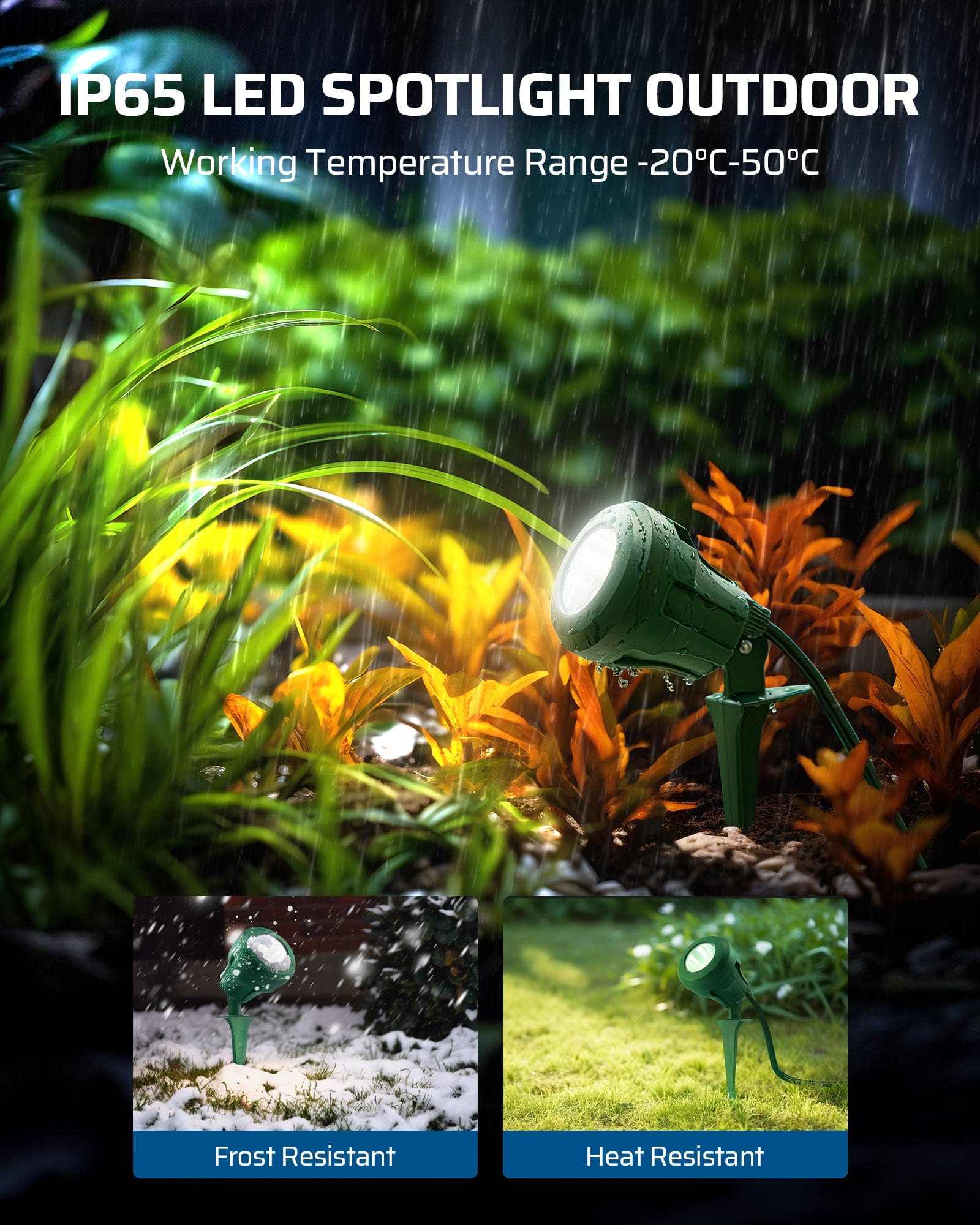 【Waterproof & Durable】Our plug in spotlight outdoor withstand rugged use outdoors, IP65 waterproof, frost and heat resistant protects it from rain, dust, and dirt to ensure long-lasting life; wide working temperature range from 68℉ to122℉