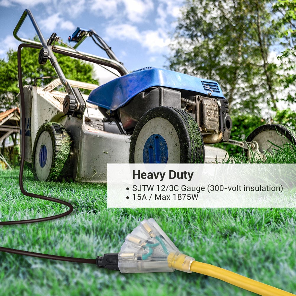 【 Heavy Duty 12 Gauge Extension Cord 】 15A / 125V / 1875W; premium SJTW 12/3 gauge contractor grade power cable has thicker, 300-volt insulation, designed for heavier use