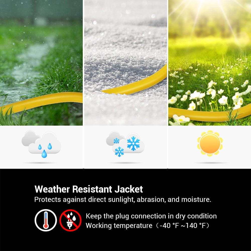 Made of durable 12AWG extension cables and 3-prong grounded plug for maximum safety. Unique material keeps it soft even in cold weather, easy to coil up for storage when not in use.Safety designed for anywhere - Built to last forever!