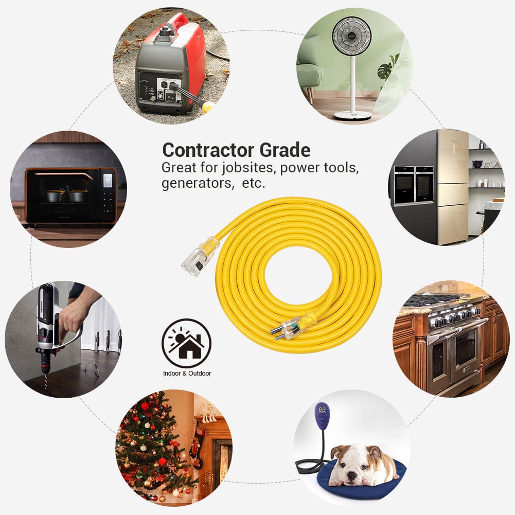【Lighted Extension Cord End】This extension cord features a convenient LED indicator that lights up when the cord is powered on. This makes it easy to know when the cord is ready to use, and helps locate it in low-light conditions. Whether you're working in a dimly-lit garage or a poorly-lit outdoor area, the LED indicator ensures you can start your tools and equipment with ease.