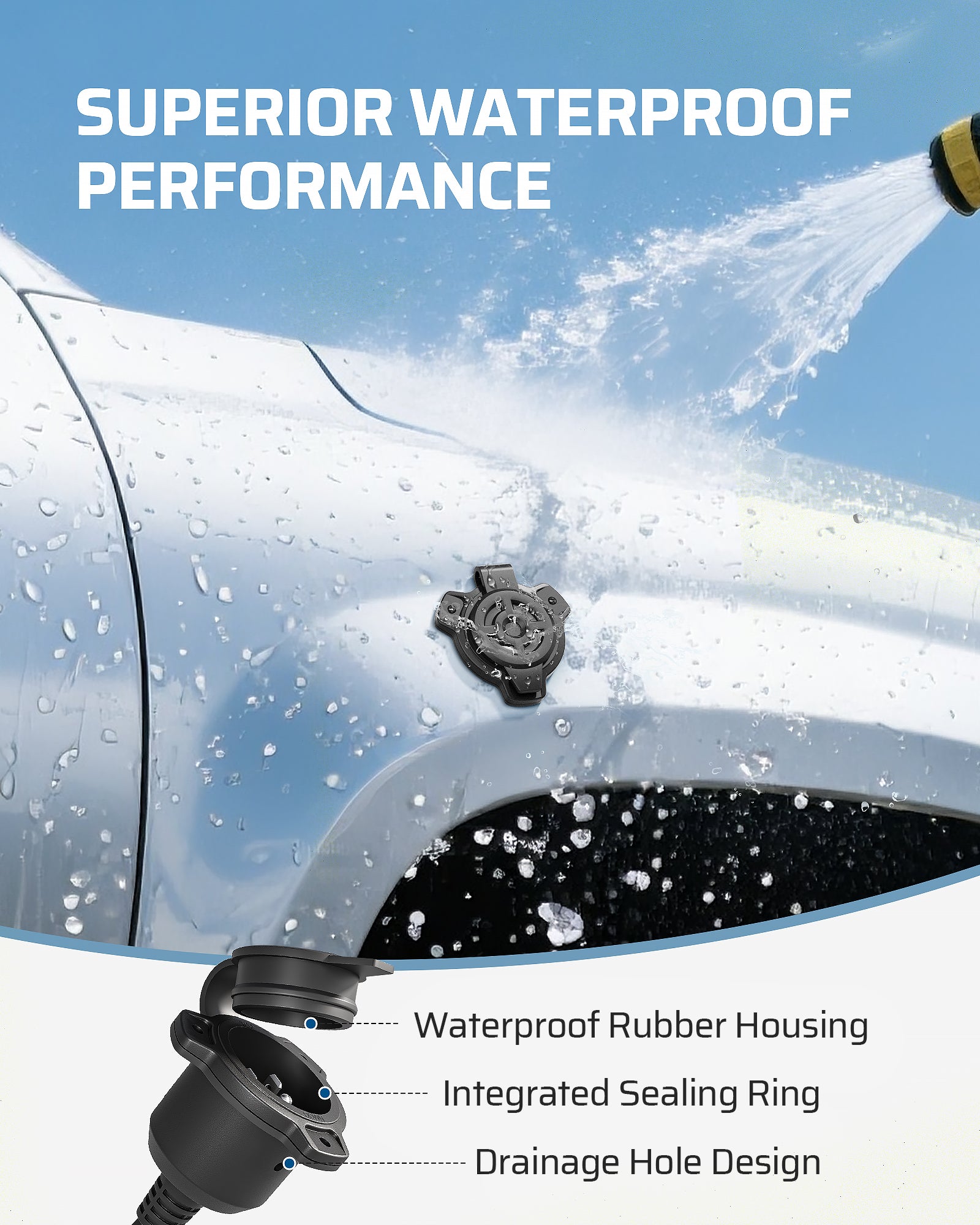 - [Durable Thickened Wire] Built with 14AWG high-strength SJTW copper wire, this AC port plug offers excellent heat and weather resistance to withstand harsh outdoor conditions such as direct sunlight, rain, and snow