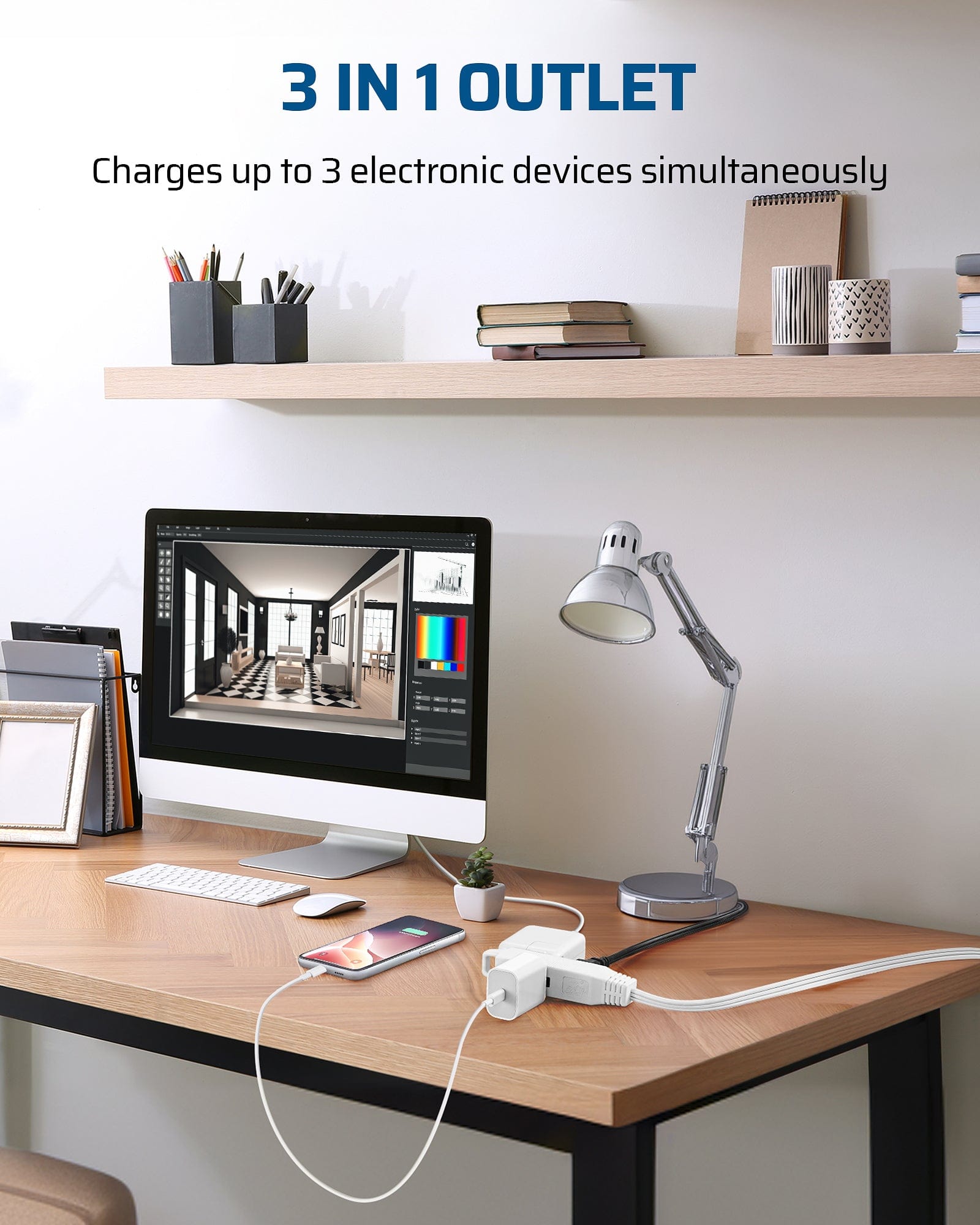 【3-Prong Grounded Outlets】This 3 prong extension cord allows you to connect up to 3 devices at the same time, easily powering your table lamp, bedside lamp, and floor lamp without worrying about limited socket availability; 13A/125V/1625W and 16/3C, ensures stable current transmission