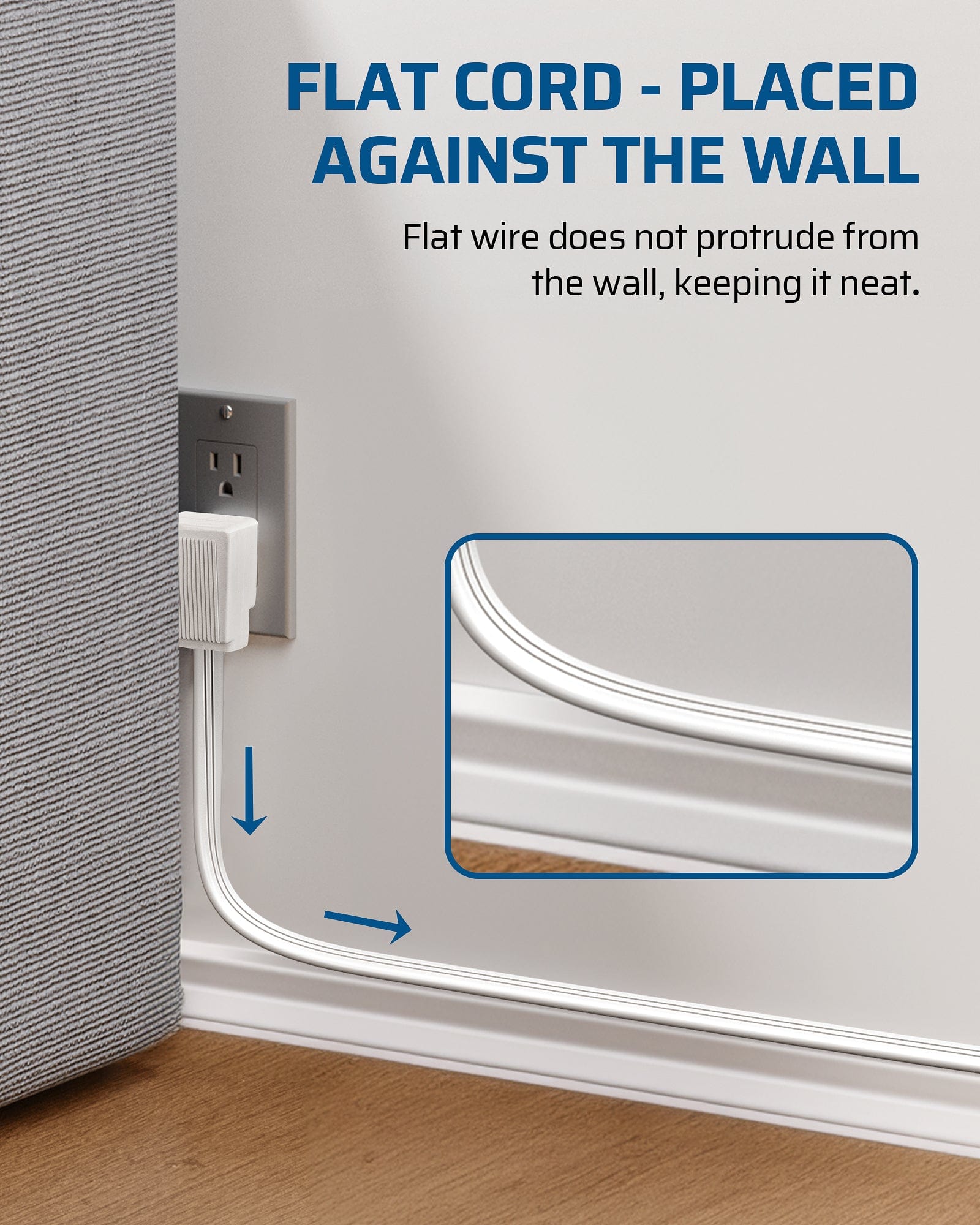 【Ultra-Thin Flat Cord】The flat power strip boasts an ultra-thin flat cord just 0.19 inches thick, allowing it to be placed flush against walls or even hidden under carpets, reducing the risk of tripping; it can flexibly pass under doors, making it suitable for use in living rooms, bedrooms, and offices
