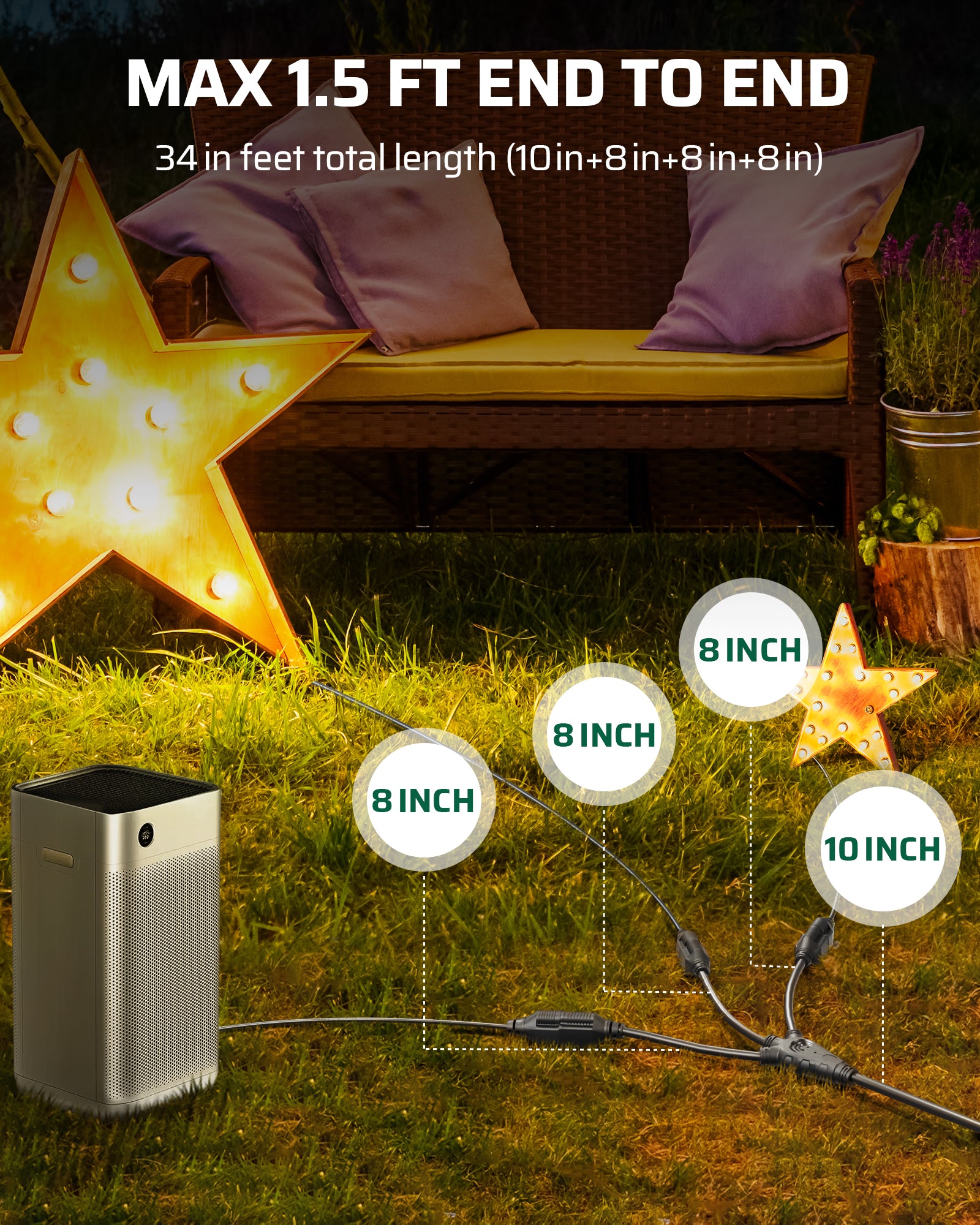 【 LENGTHS CORD 18 INCHES】This 18-inch cable strip is a practical solution for adding much-needed length to surge strips, UPS outlets, or other electronic device cords. It provides more flexibility for multiple AC transformers or AC/DC wall warts, recessed outlets, and other hard-to-reach outlets, making it easier to connect your devices in a way that suits your needs.
