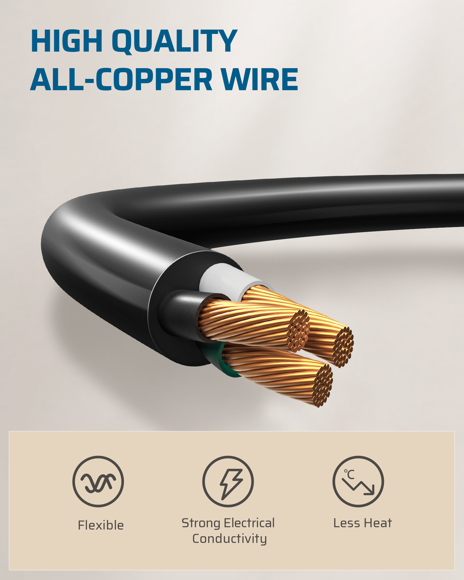 【PERFECT FOR INDOOR USE】This SJT 14/3 gauge power cable is a safe and reliable choice for powering high-power household appliances such as laptops, phone chargers, microwaves, and other appliances. With a rating of 15A / 125V / Max 1875W, this cable provides plenty of juice for your devices. However, it's important to note that this cable is for indoor use only.