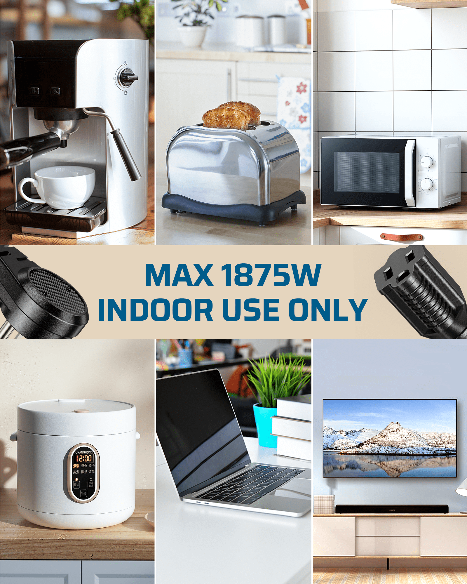 【ANGLED FLAT PLUG】The low profile angled plug is a convenient feature that allows you to plug in your devices without blocking the other outlet. This makes it perfect for creating a centralized hub for your electronics at your home, office, workshop, or garage.