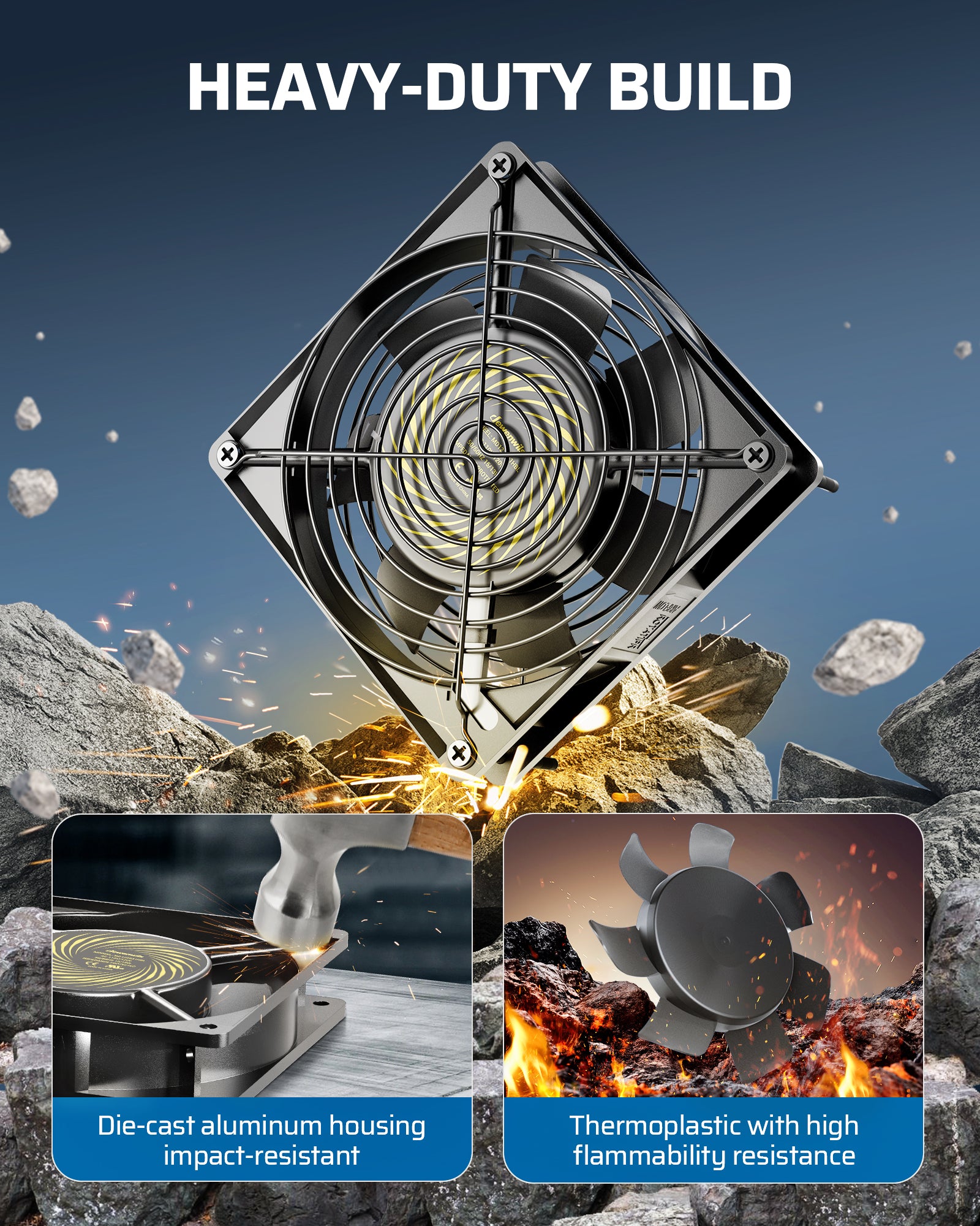 【Durable Build】Crafted from rugged die-cast aluminum, the housing ensures long-lasting performance even in harsh environments; our cooling fan blades are made from thermoplastic, offering excellent flame resistance