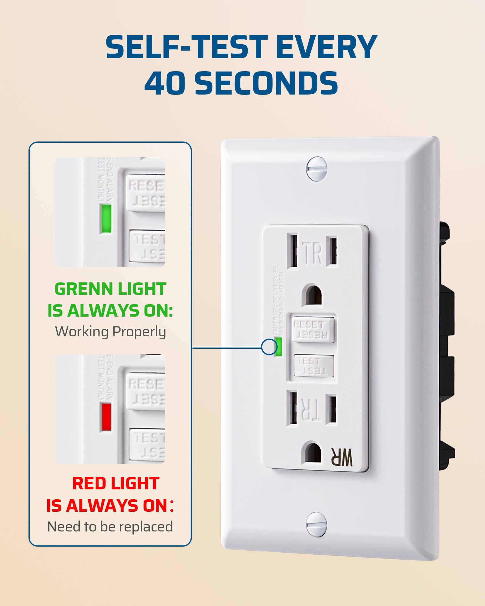 【Self-Test】Automatically conducts a self-test every 40 seconds to ensure reliable performance; the LED indicator flashes red during self-test, shows green during normal operation, and stays solid red in case of a fault