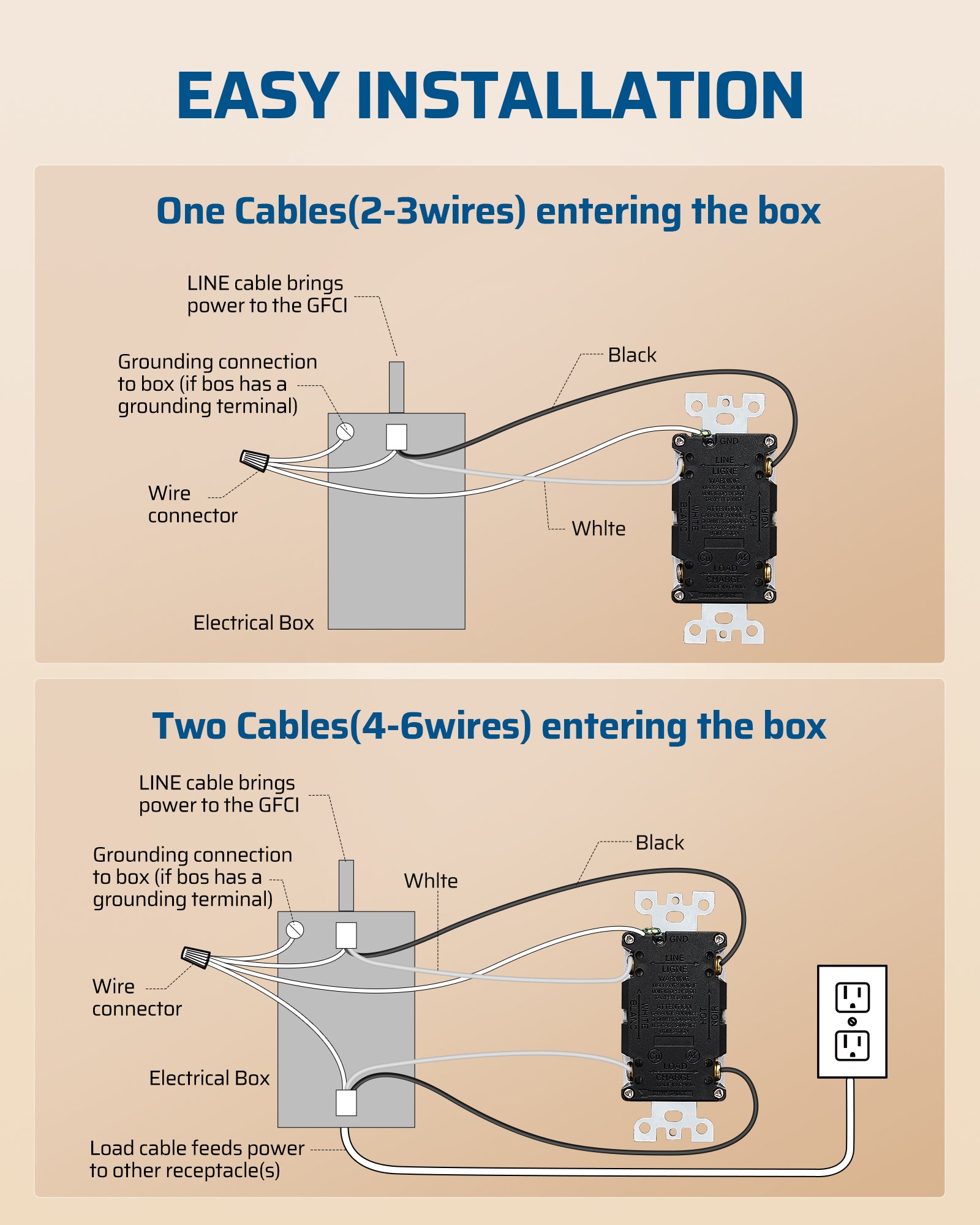 【Standard Size & Secure Fit】Designed to fit standard dimensions, the gfi receptacle inserts firmly for a stable connection and can be easily removed when needed