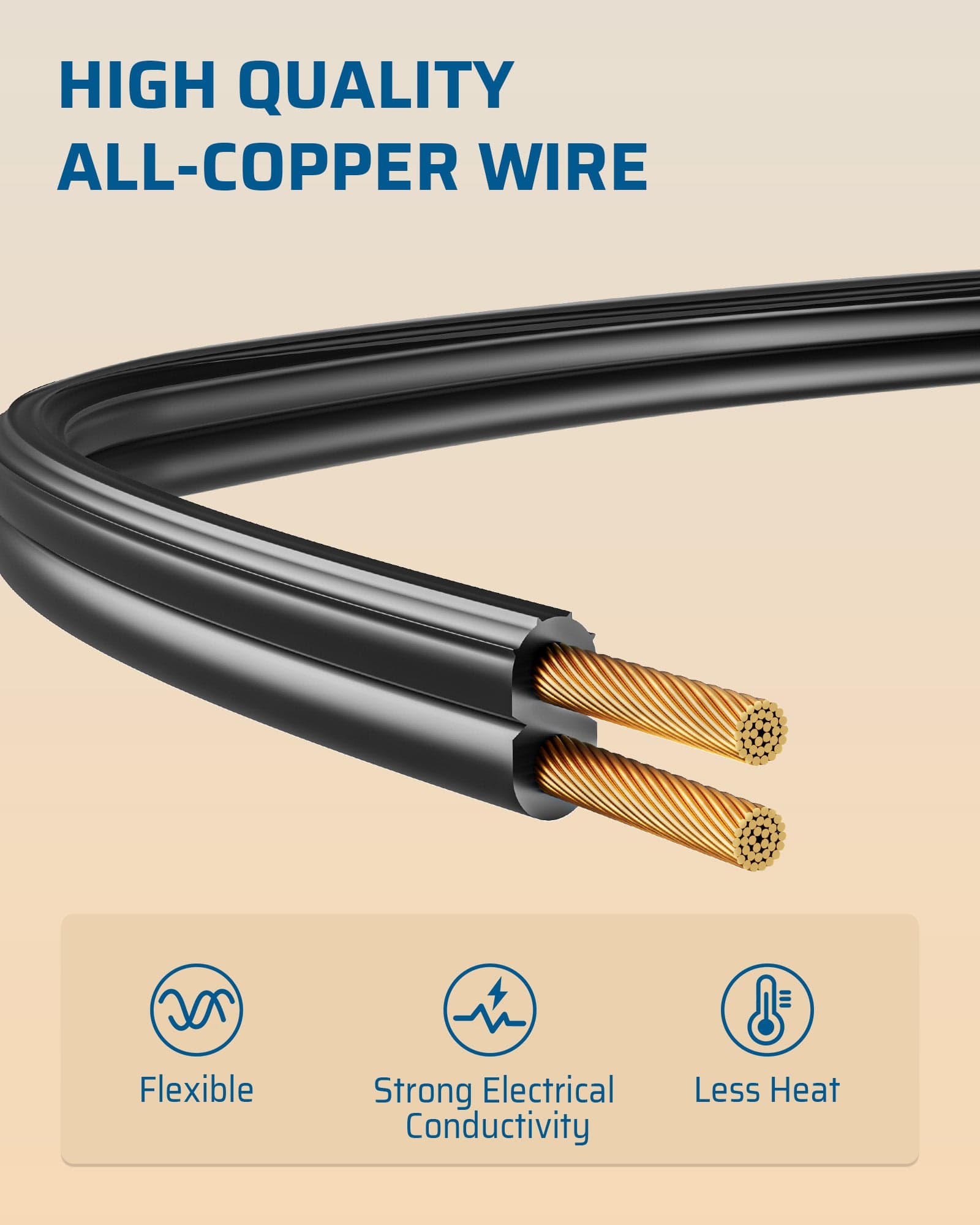 【Versatile Indoor Use】With a 16 AWG power cord supporting up to 10A, 1250W, this extension cord is ideal for home and office; extend short lamp cords to outlets behind furniture or connect temporary holiday lights, perfect for powering table lamps, tablet PC, fan, and festive lighting