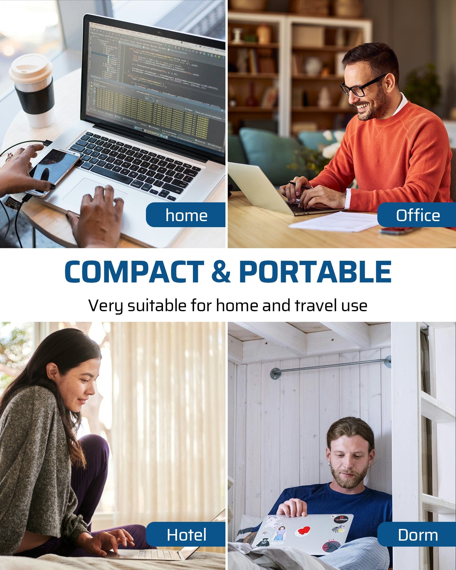 【Compact & Portable】This slim power strip is designed to be ultra-compact in your backpack or handbag, making it the ideal companion for both home and travel; it provides power for all your electronic devices, including computers, laptops, phones, tablets, Bluetooth speakers, and smartwatches