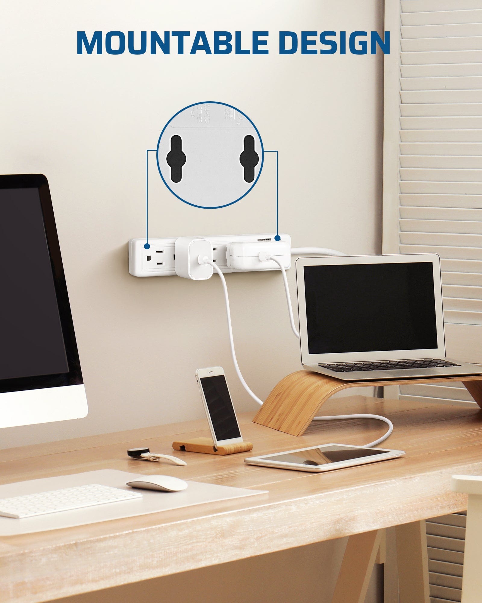 【Space-Saving Wall-Mount Design】The household power strip features a wall-mountable design with 2 sturdy slots on the back, allowing it to blend seamlessly with your wall or under your desk; adds a touch of minimalist beauty into your home or office, perfect for studies, bedrooms, offices, and conference rooms