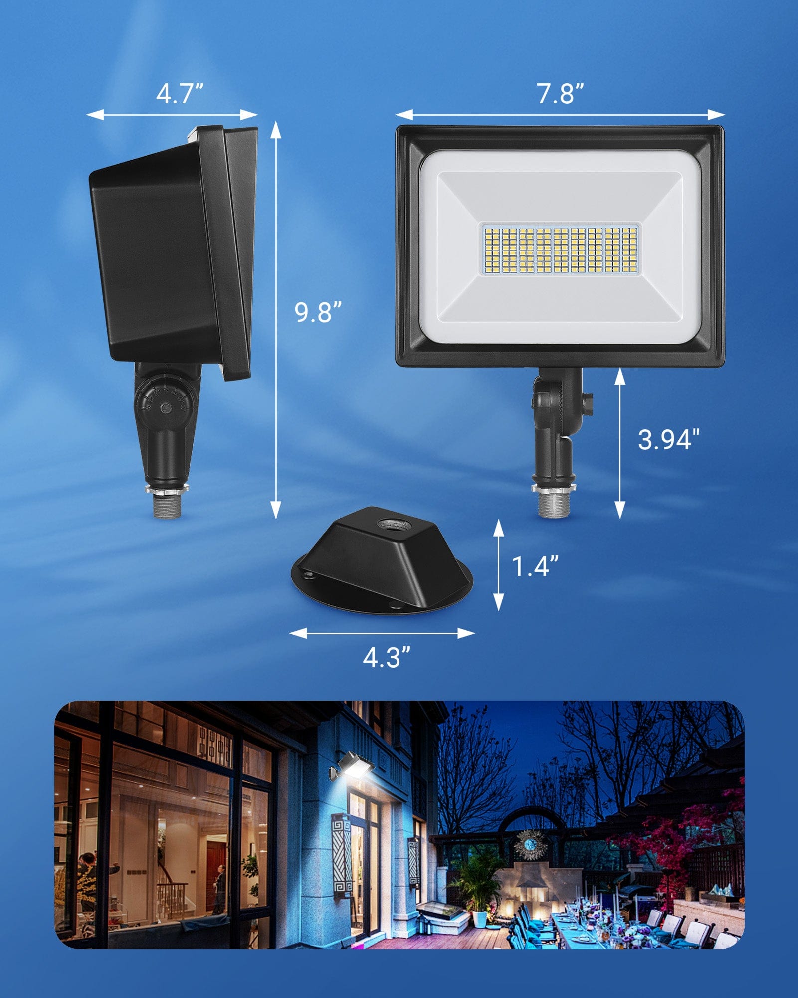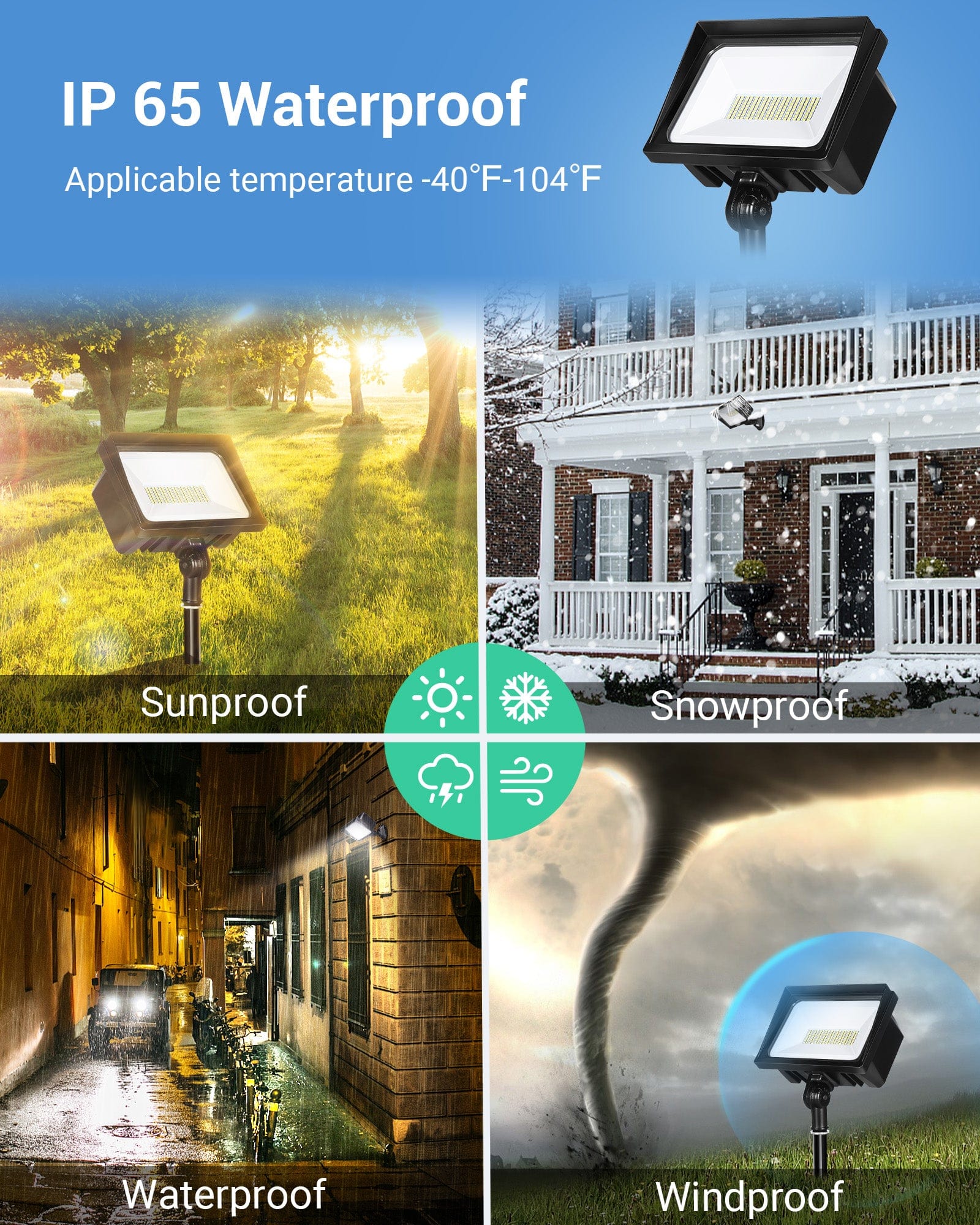 【Wide Applications】This flood light is UL listed, ensuring quality and safety. It has an IP65 waterproof rating, making it suitable for use in wet locations. It's perfect for both outdoor and indoor use, and can be installed around parking lots, garages, courtyards, doorways, pathways, patios, and more.