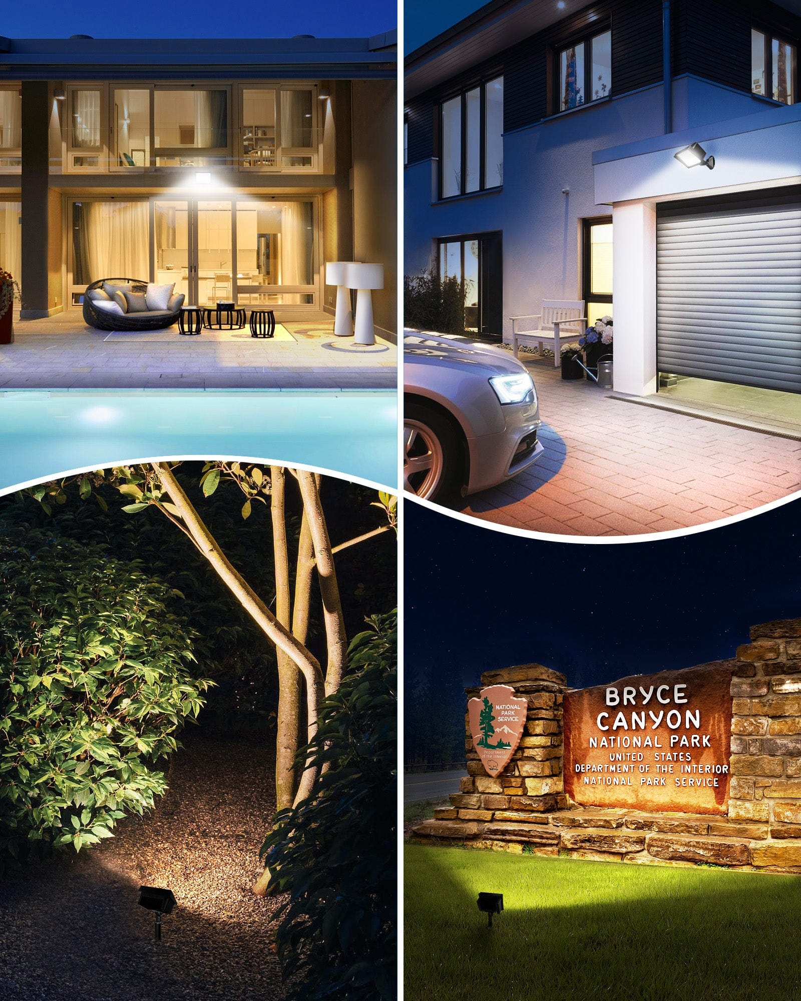 【Durable Outdoor Lighting】The light is constructed with die-cast aluminum material and a specially designed lens to prevent water from entering. The amazing heat dissipation feature ensures a lifespan of 60,000 hours, making life easier without frequent bulb replacements.