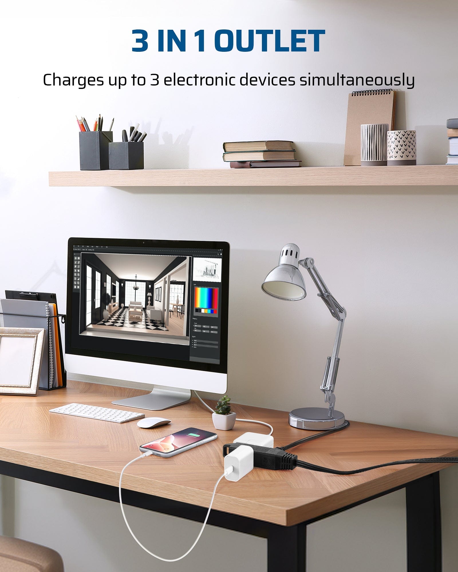 【Sturdy Strain Relief & ETL Certification】This 3 prong power strip has undergone rigorous ETL safety certification, the specially reinforced strain relief design ensures stability and safety even with frequent movement or adjustments in daily use, significantly extending the lifespan of the power strip