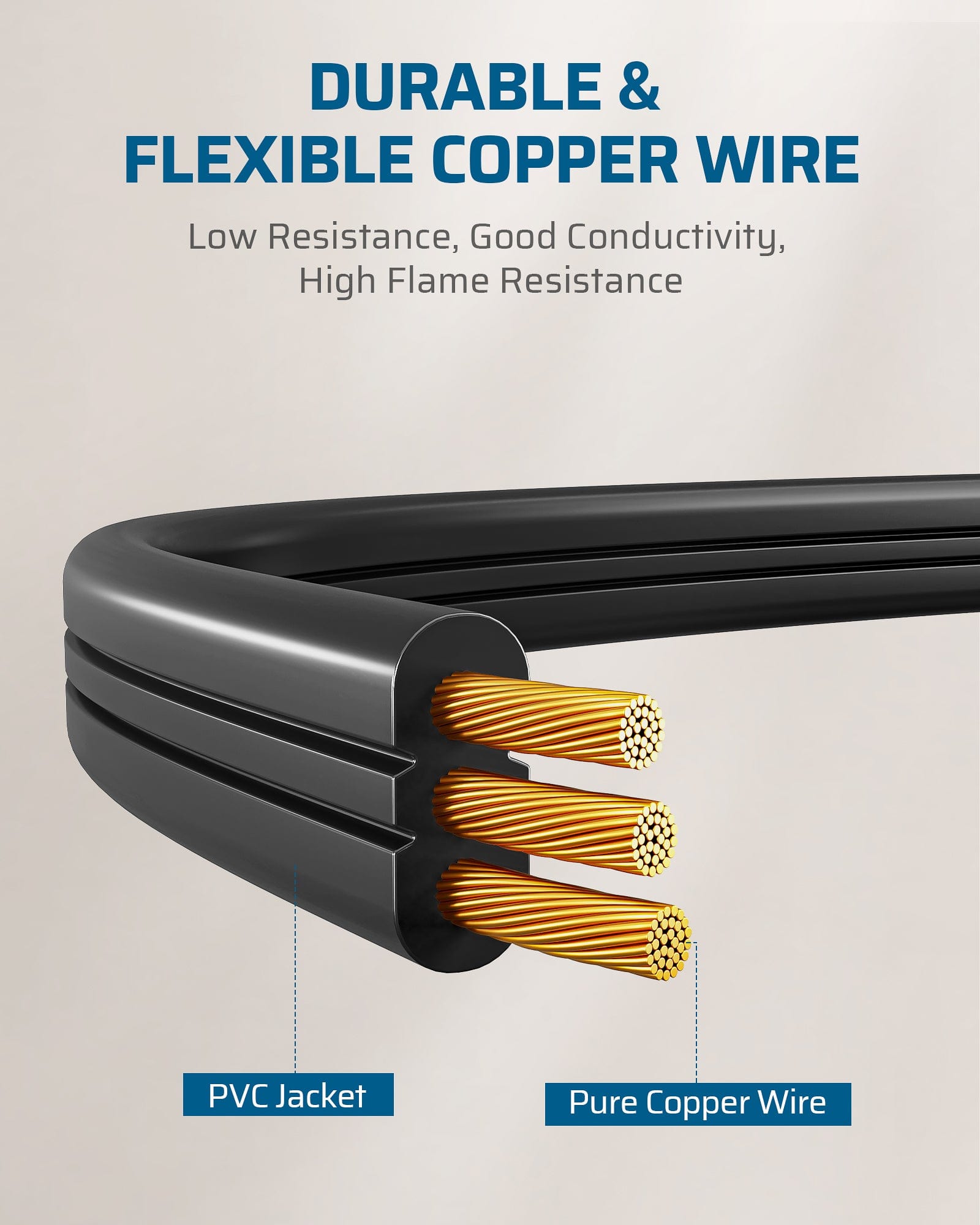 【Durable & Safe】Made with SPT-3 wire and featuring a full copper core, this flat power strip offers low resistance, high conductivity, and excellent flexibility, reducing heat generation and ensuring electrical safety; flame-retardant PVC outer layer provides durability and preventing the spread of fire in case of an emergency