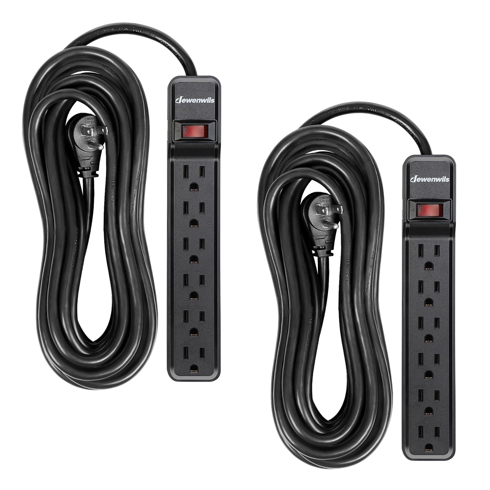 DEWENWILS Power Strip Surge Protector with 25ft Extra Long Extension Cord, Low Profile Flat Plug,15 Amp Circuit Breaker, 500 Joules, Wall Mount (2 Pack)-HOU625B