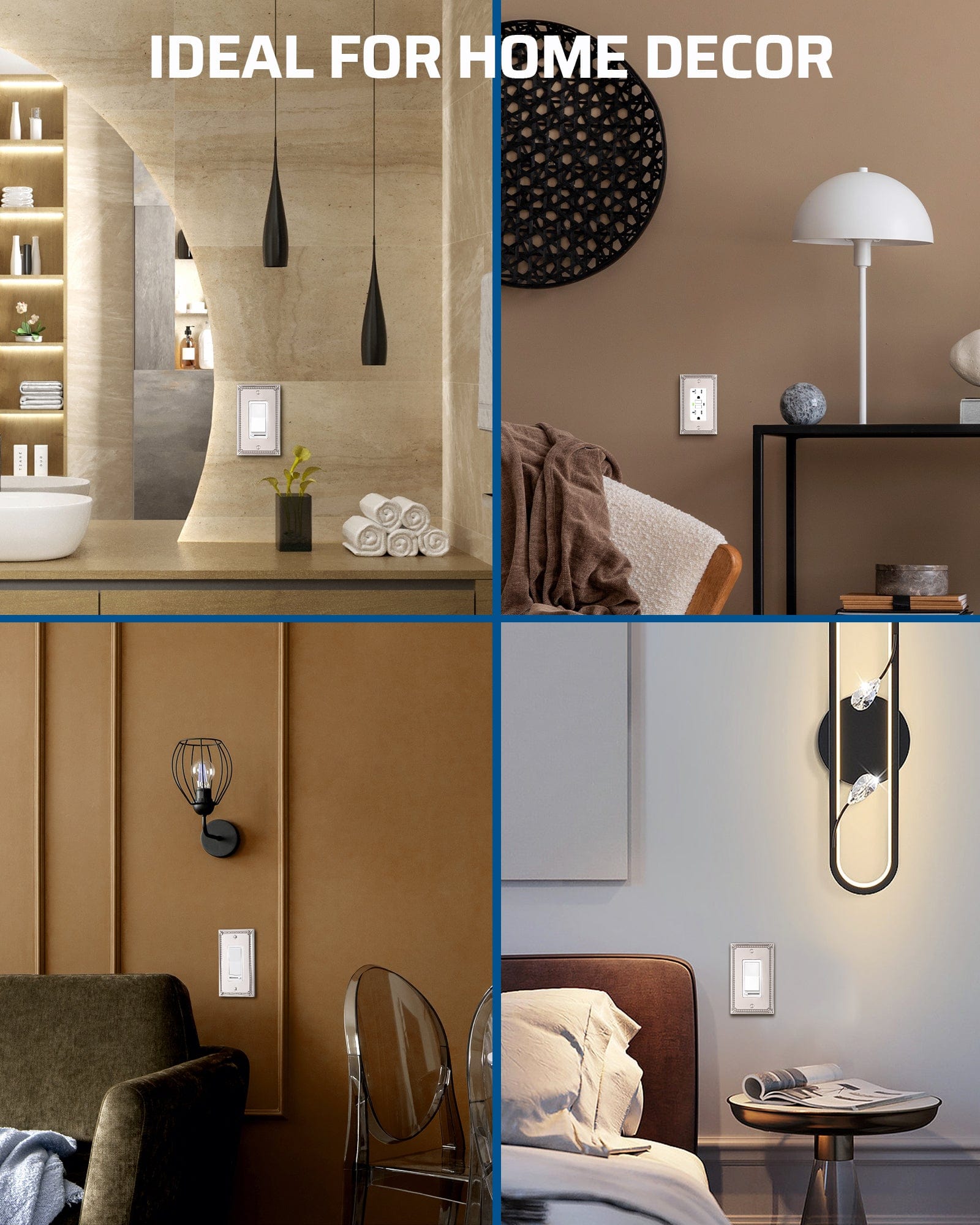【Wide Application】The switch plate cover is suitable for multiple switches and outlets and can be widely used for dimmers, switches, sockets, etc; it complements any indoor style, whether modern, traditional, or vintage, adding a charming touch to your walls