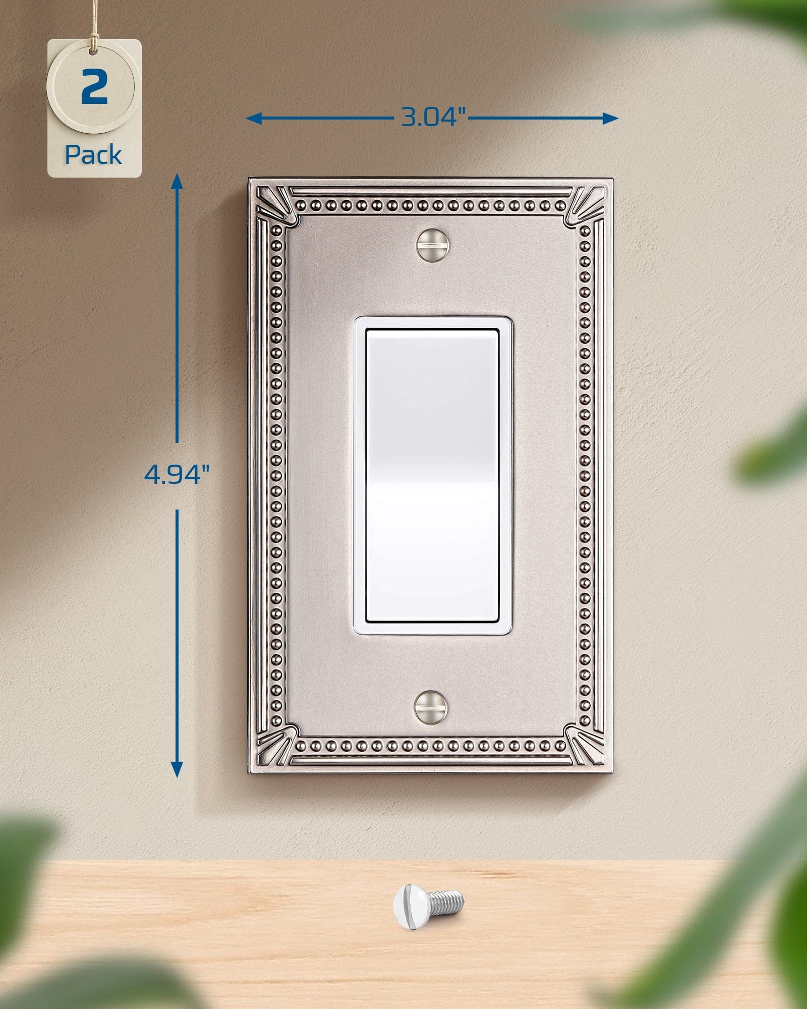 【Elegant & Simple Style】DEWENWILS light switch cover, with satin nickel finish the classic beaded border, delicate and elegant; perfect for room remodeling, and add a decorative touch to the boring wall, give your living room, bedroom, bathroom and kitchen a brand new look