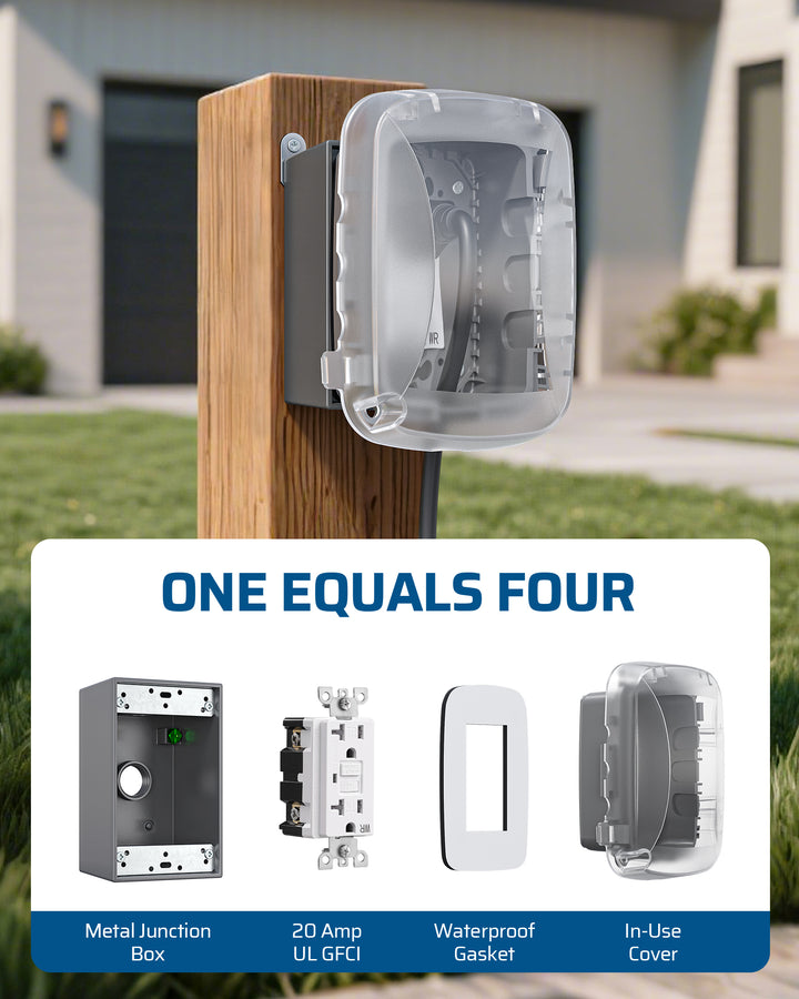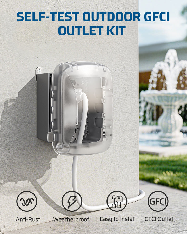 - [Professional GFCI Protection] This kit includes a durable metal junction box, a self-testing 20A GFCI outlet, and a weatherproof in-use cover, providing a safe and reliable solution for all your outdoor electrical needs