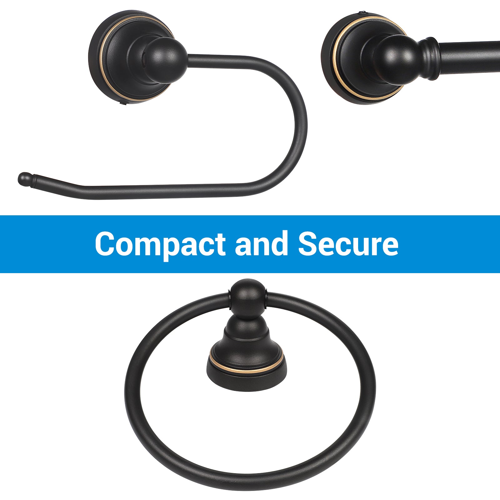 【All-in-One】5 piece all-in-one bathroom set can update your bathroom easily ,with a matching 3-light vanity light, towel bar, towel ring, toilet roll holder and robe hook