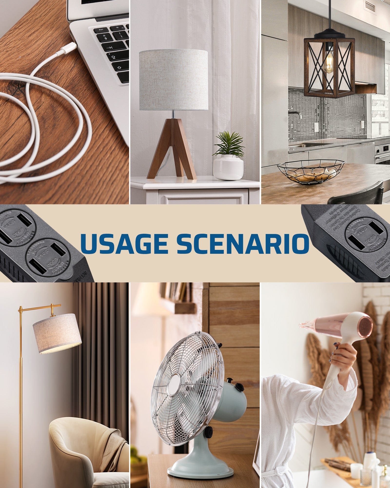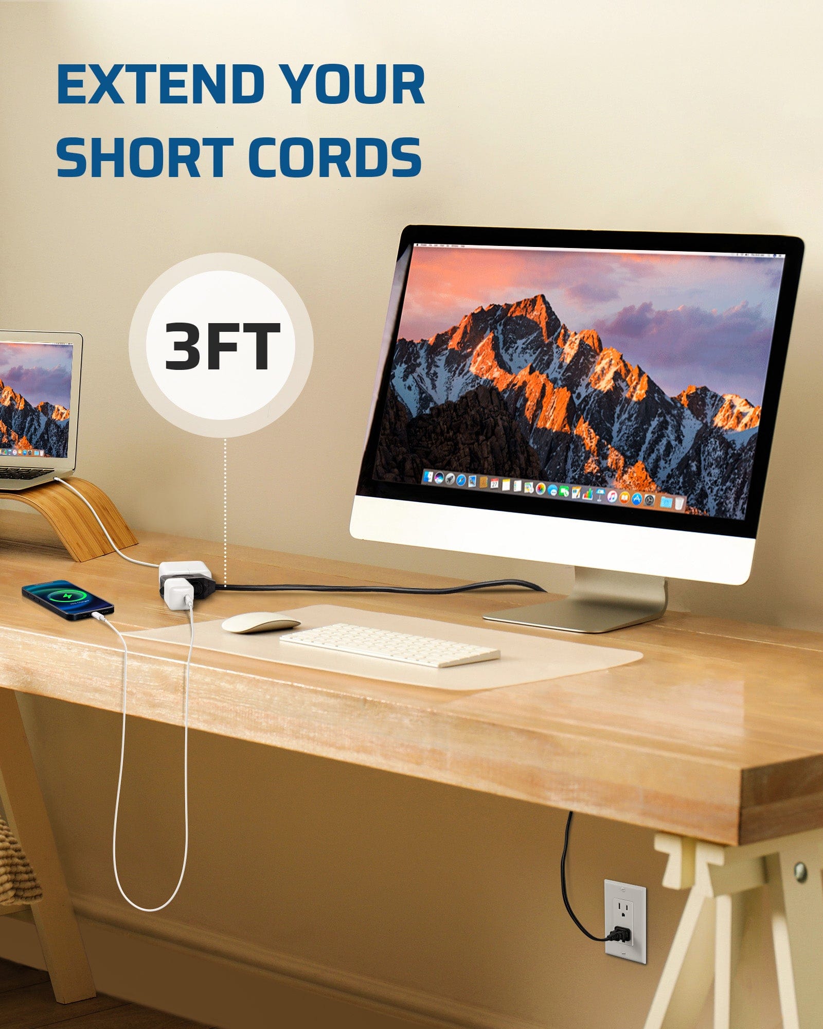 【3 2-prong Polarized Outlets】Each short extension cord comes with 3 polarized 2-prong outlets on the front and back side, allowing you to expand 1 outlet into 3 outlets. This allows you to charge up to 3 electronic devices simultaneously, maximizing the usage of power strips and wall outlets. With this convenient extension cord, you can easily power all your devices without the need for multiple power outlets.