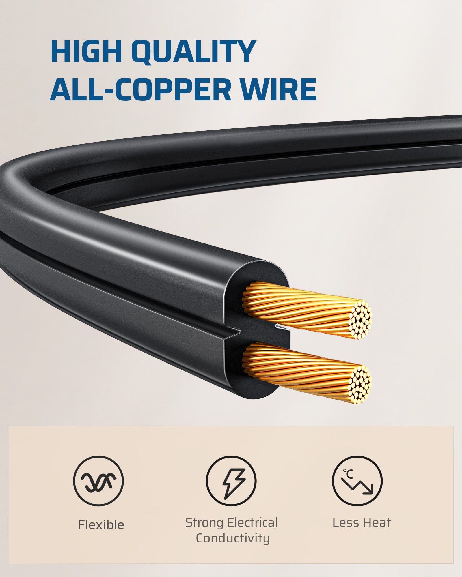 【Indoor Appliance Extension Cord】This 16/2 gauge power cable is rated for 13A, 125V, and 1625W. It is designed to withstand a wide range of temperatures, from -40°F to 140°F, making it perfect for household use. This cable is ideal for powering table and floor lamps, laptop and phone chargers, portable fans, and other electronic appliances. However, please note that it is rated for indoor use only and should be used in dry conditions.