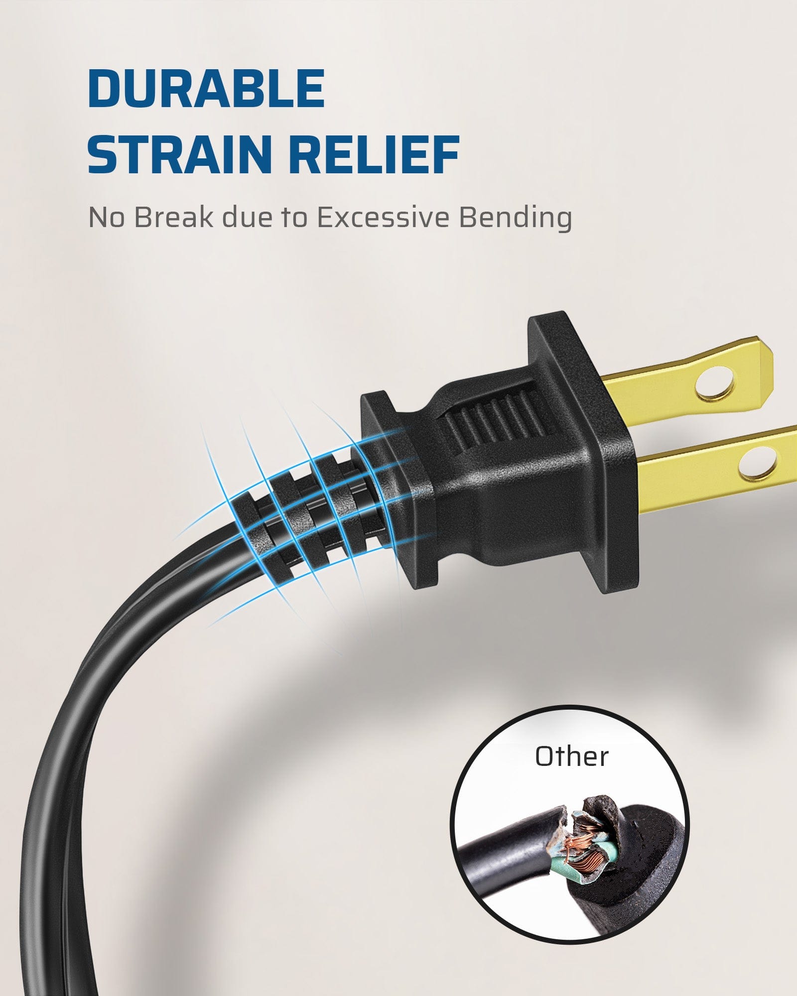 【Small & Slim Extension Cord】The lightweight design makes it easy to travel with, allowing you to take it to RVs or hotel rooms with limited power outlets. The 2-pin male plug can be easily inserted into a standard 2-pin or 3-pin socket, making it compatible with a wide range of devices.
