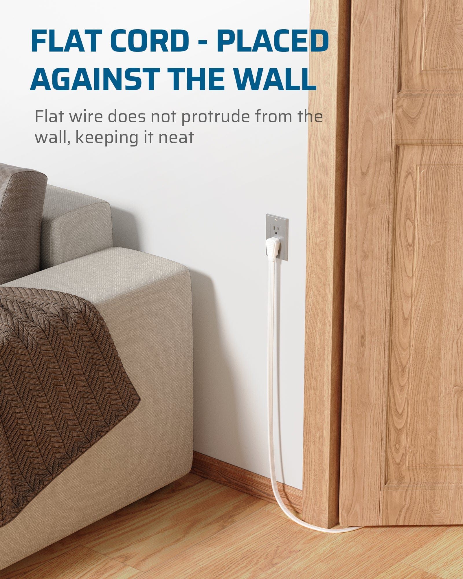 【Space-saving Design】This extension cord features a flat plug that can save space, making it ideal for use in tight spaces or behind furniture. With this flat plug, you can easily plug in and power your devices without worrying about taking up too much space.
