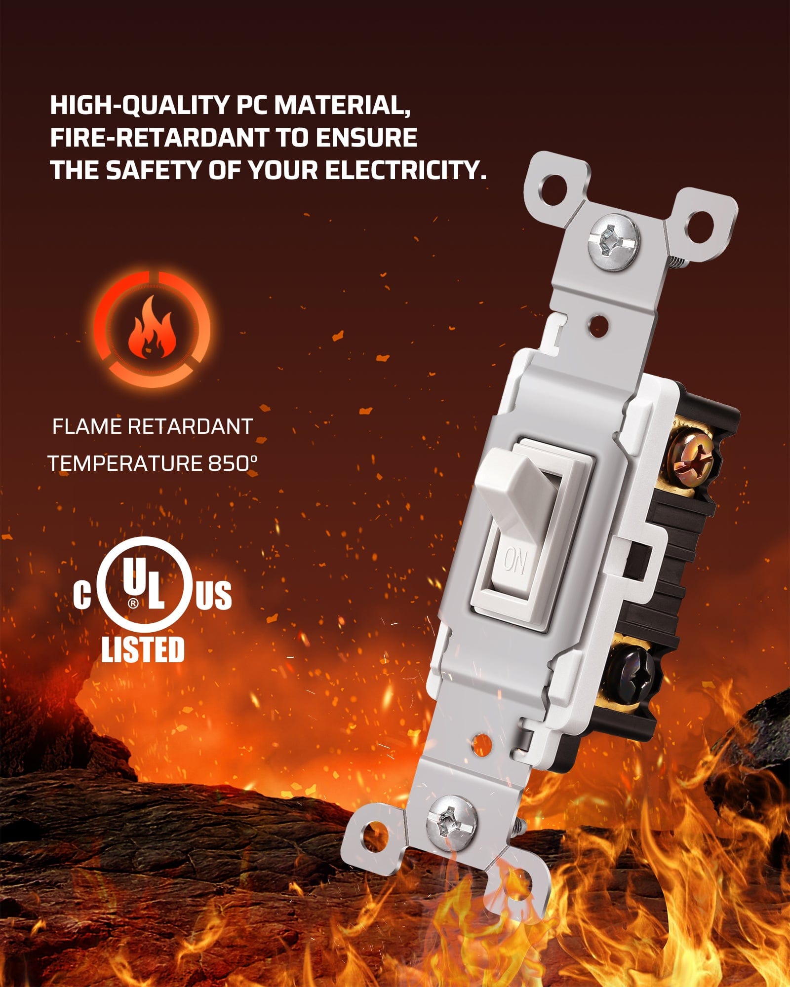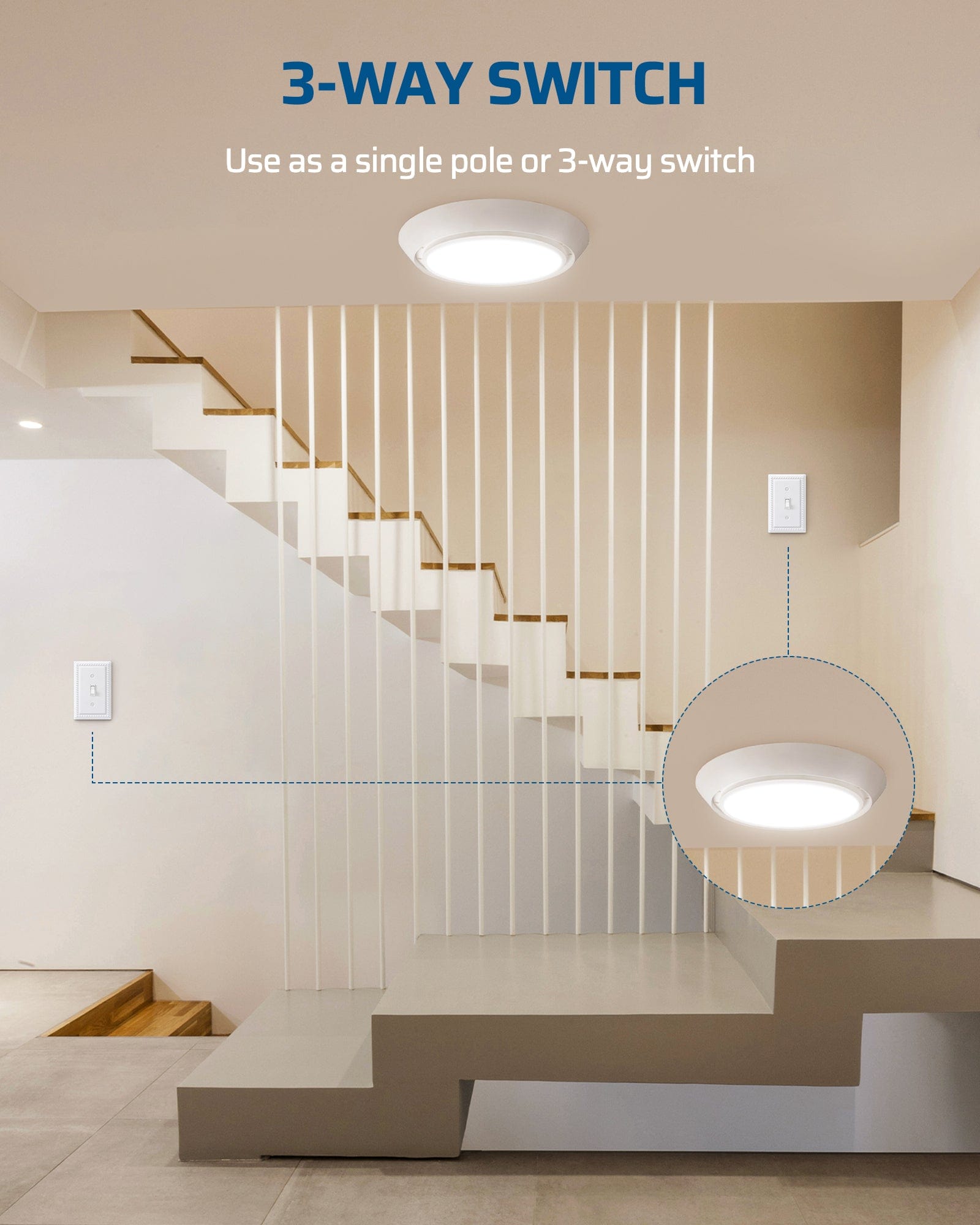 【Durable & Long Lasting】The 3 way light switch is made of impact-resistant Polycarbonate Thermoplastic and solid steel, sturdy and durable to use; silver alloy electrical contacts for long-lasting and highly conductive