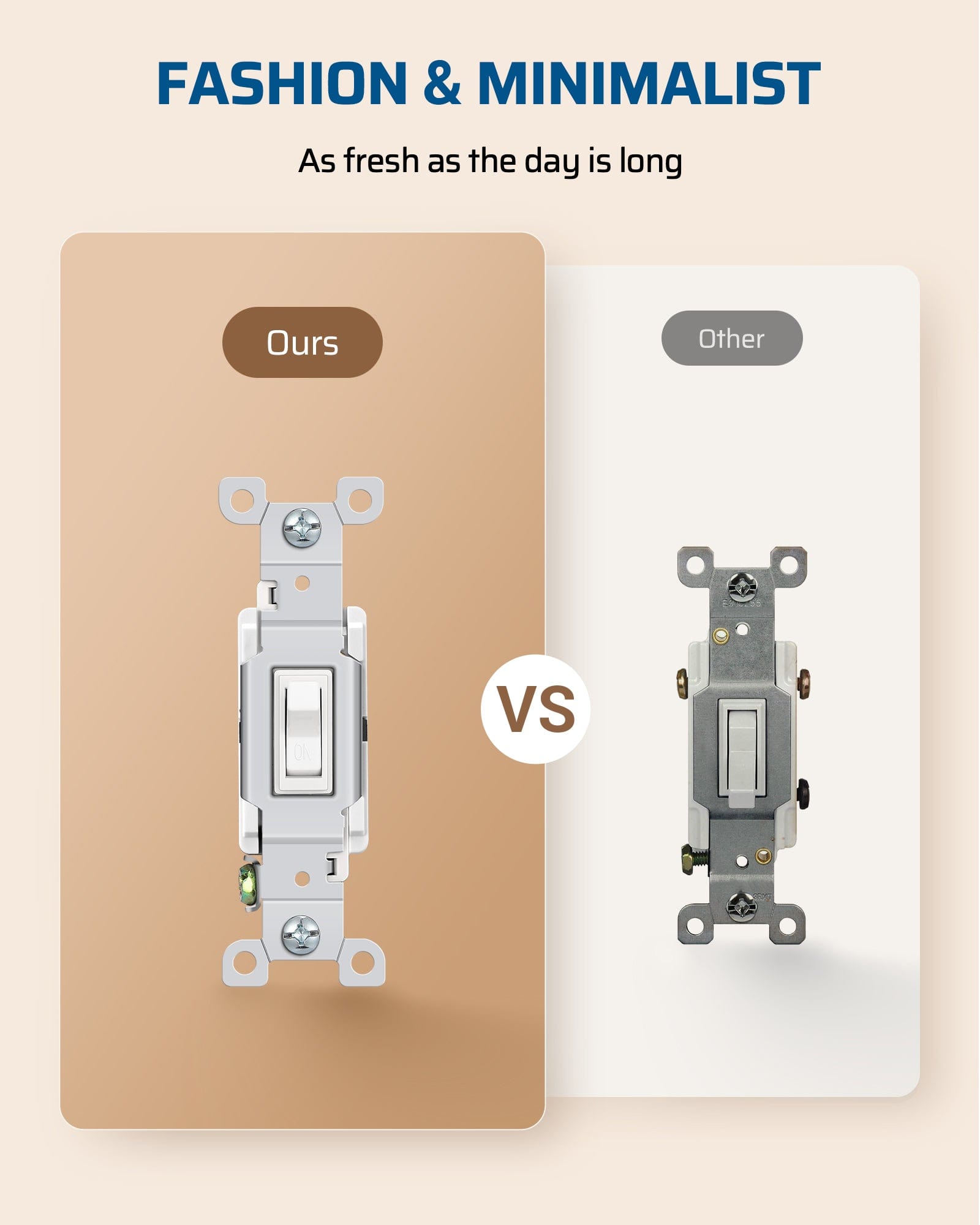 【Minimalist Design】Our 3 way toggle switch with modern minimalist look to complement your existing wall plate, adds a touch of elegance to your home, apartment, office