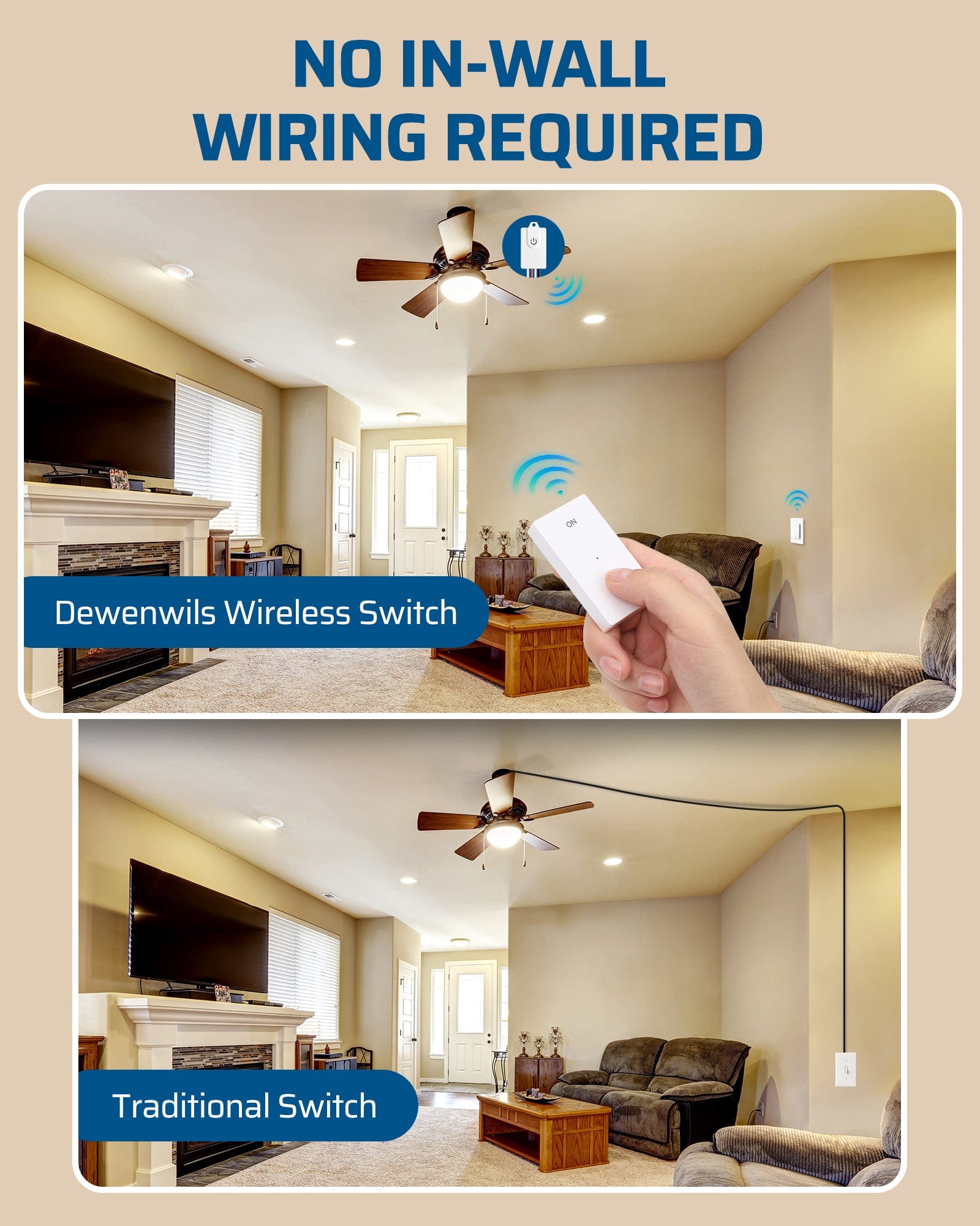 DEWENWILS 3 Way Wireless Light Switch and Receiver Kit, No in-Wall Wiring, 15A High Power, 100FT Range, Programmable & Expandable, Remote Control Light Switch for Lamp, Ceiling Light, Fan-HWLS21G
