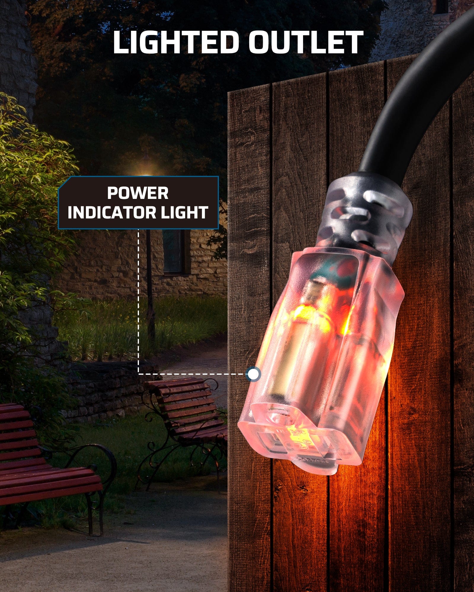 【Easy-To-Use Tail Plug with Indicator】Single socket transparent pigtail with built-in indicator light, when the power cord is energized, the LED indicator will light up, allowing you to know that the GFCI cable is ready for use and easy to find even in the dark