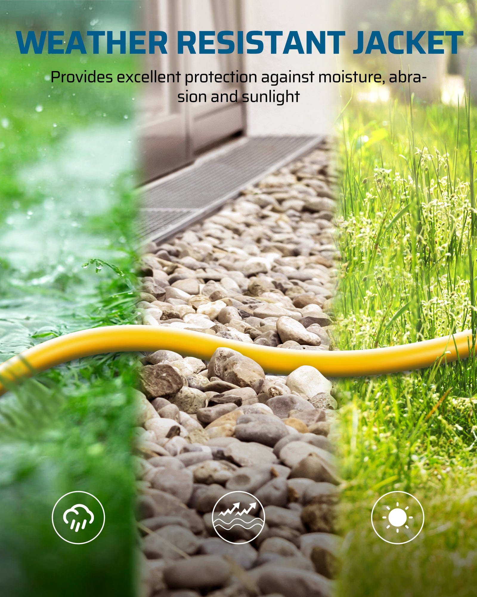【Indoor & Outdoor Use】High-quality yellow PVC jacket provides excellent protection against moisture, abrasion, and sunlight; operates from -40°F to 140°F and withstands extreme weather conditions to ensure reliable, long-lasting performance