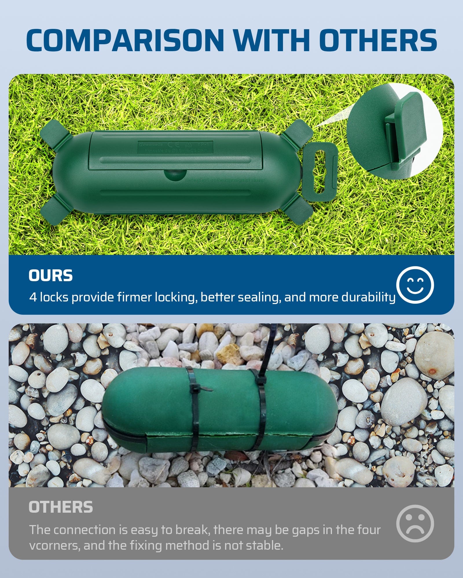 【DOUBLE LOCK & PROTECTION】 This outdoor extension cord safety seal has a top lid and 4 extra durable latches that enhance the sealing of the box. Additionally, it features 4 lockable latches that securely fasten the cord safety seal box for safe use, even if the top lid is broken off.