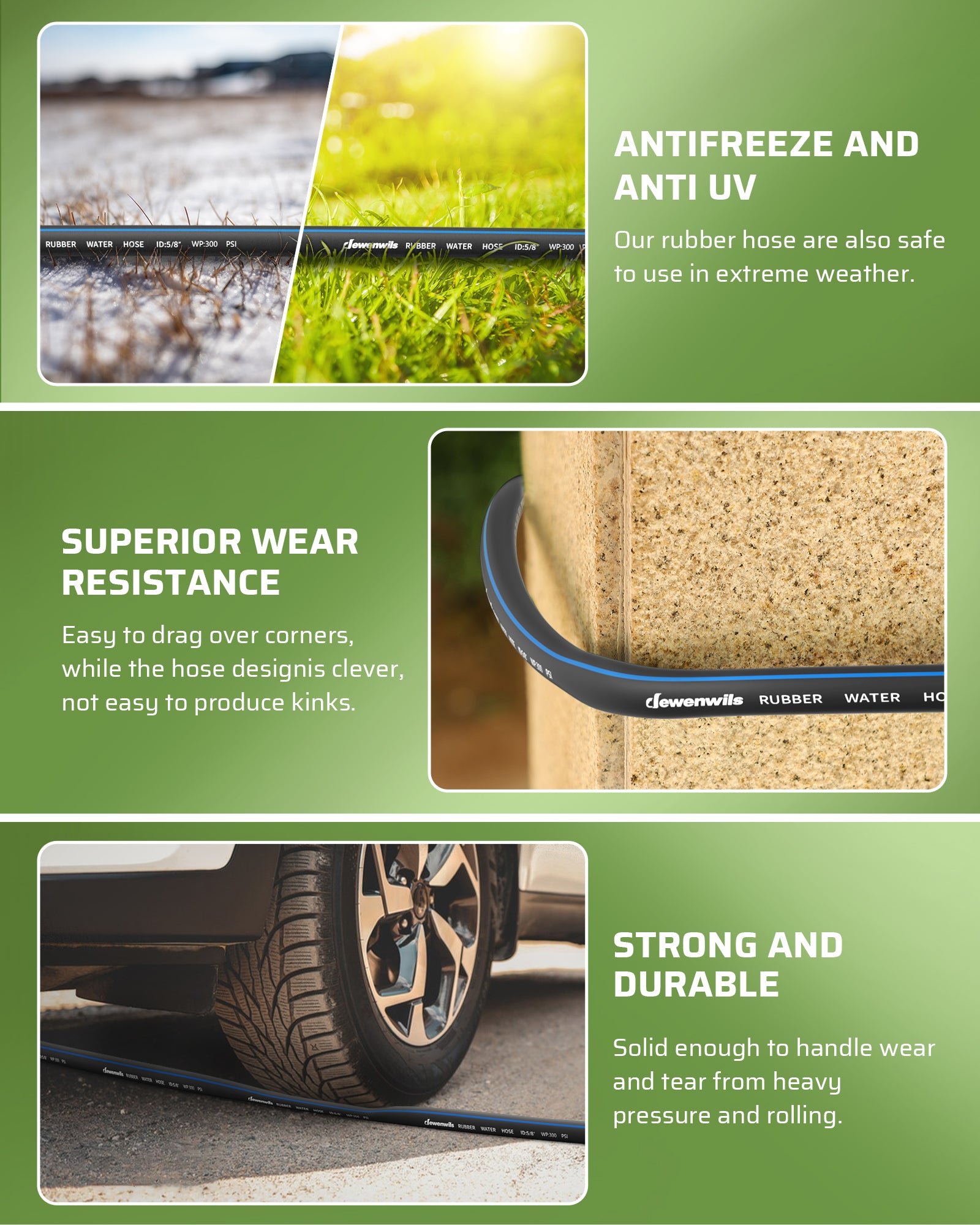 【Reliable Heavy-Duty】This Rubber hose combines heavy-duty durability with anti-kink technology, ensuring seamless and reliable water delivery for your toughest tasks; flexible and dependable, even in extreme conditions as low as -40℃