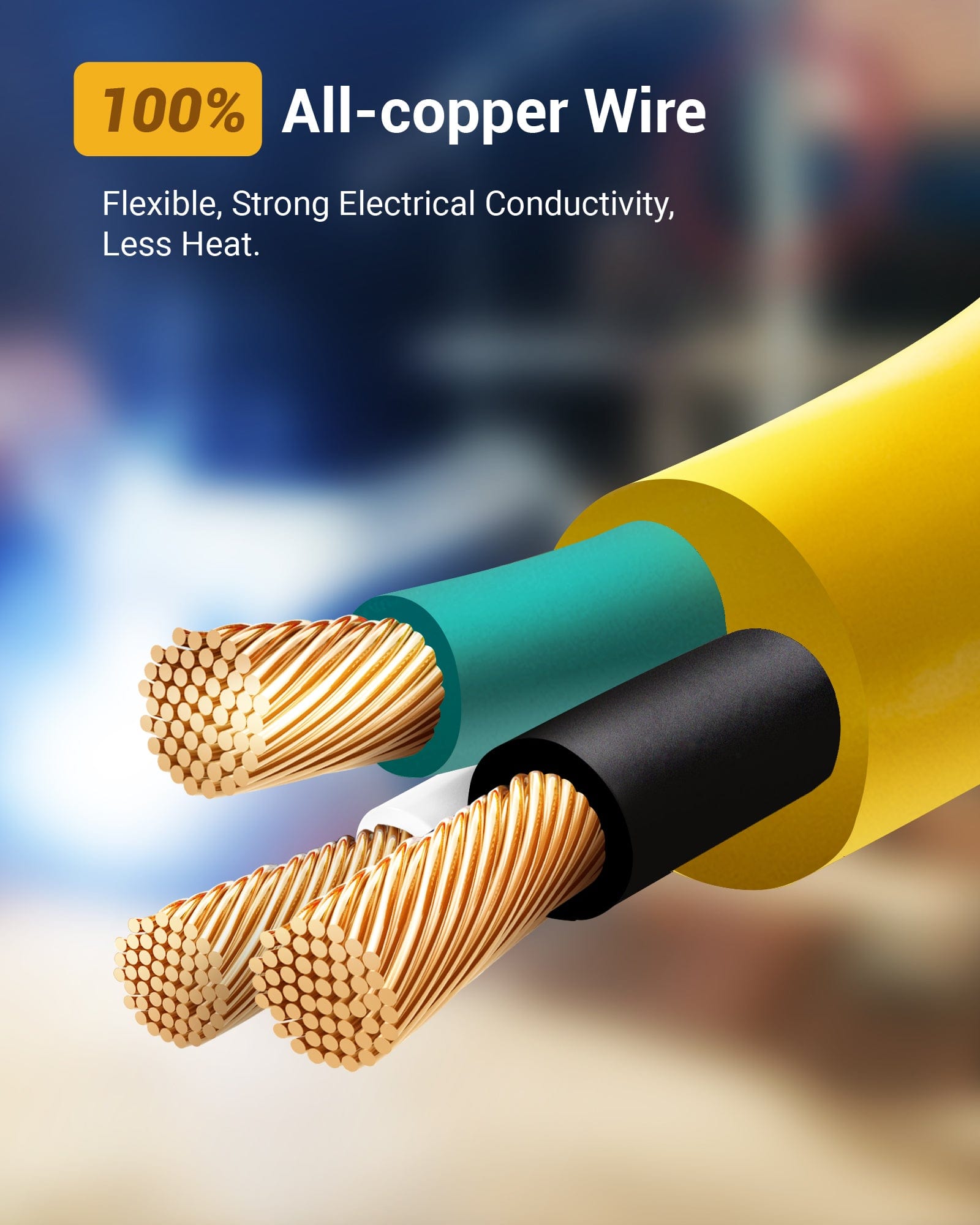 【Weatherproof & Durable】Built to last; with high-quality construction & durable yellow PVC sheaths, our outdoor extension cords can resist moisture, water, snow, abrasion, corrosion, and sunlight, ensuring long-lasting & reliability; withstand temperatures from -40°F to 140°F, perfect for any weather condition