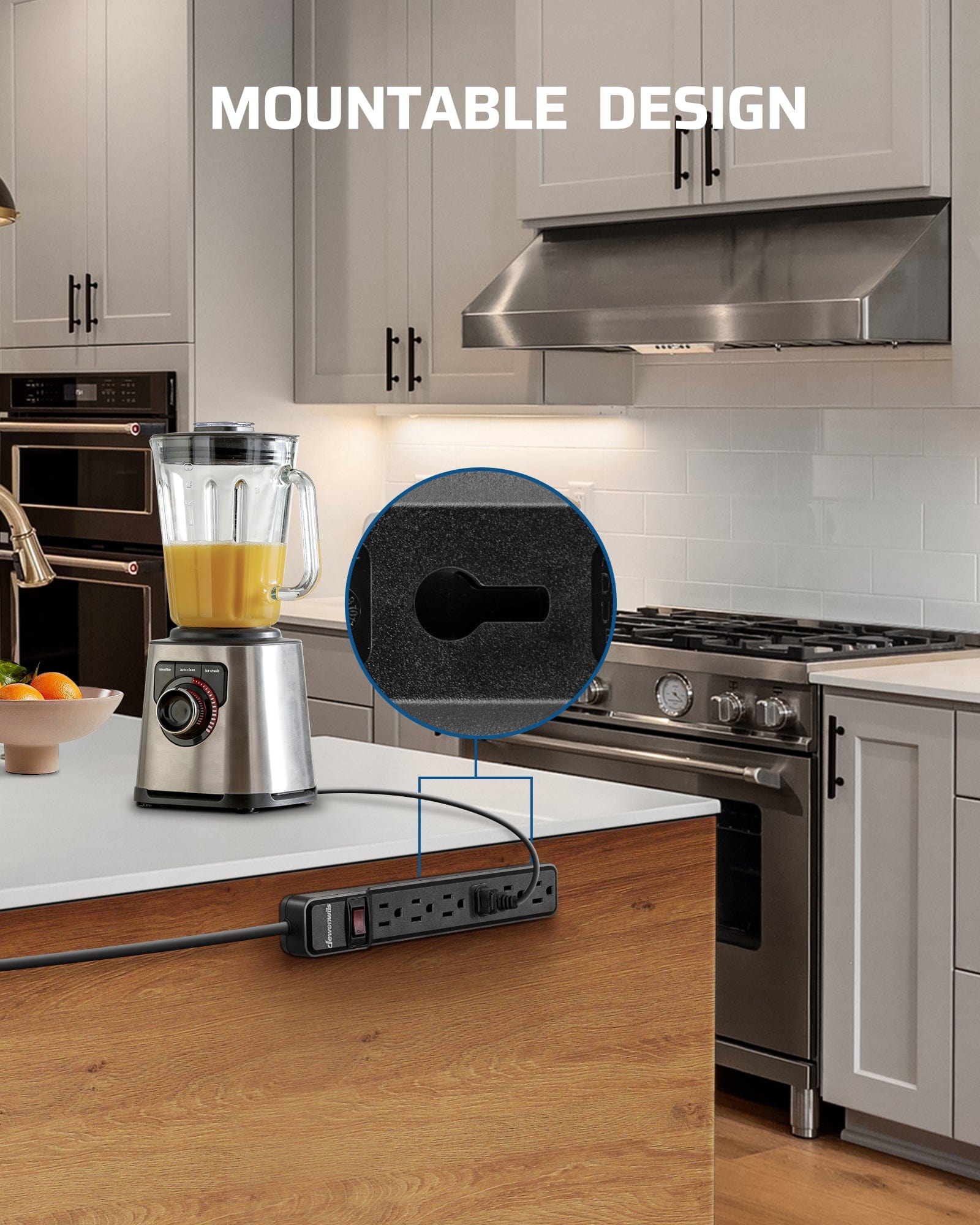 【Wall Mountable】This wall-mount 6-outlet surge protector power strip includes 2 keyhole mounting slots on the back, providing convenient wall-mounting options. It can also be mounted to a workbench or under a desk.