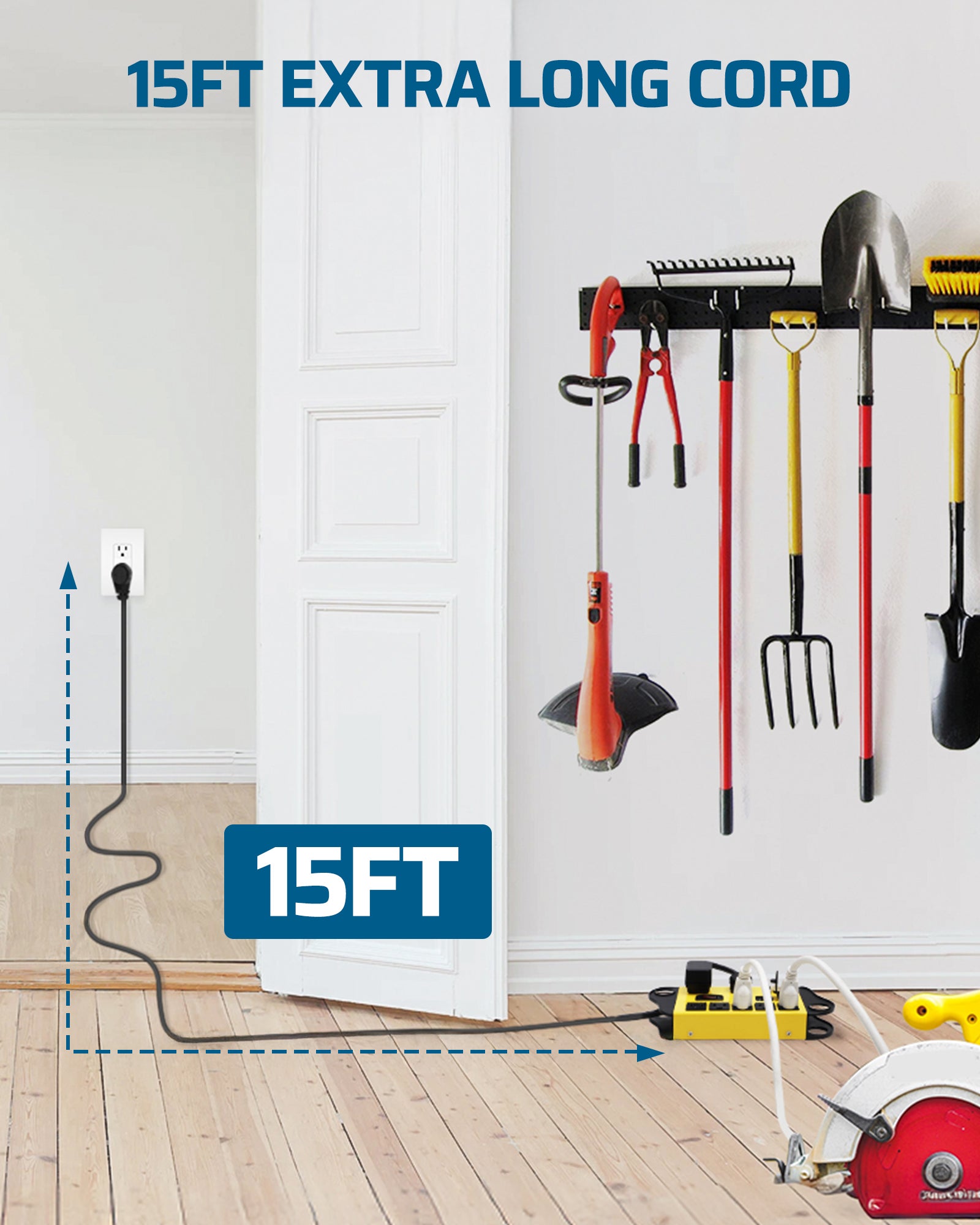 【15Ft Long Cord & Flat Plug】The 14 AWG heavy-duty power cord of this power strip is durable and wear-resistant. The 15-foot long cord is sufficient for any conceivable placement situation, eliminating the need for an additional extension cord. The right-angle flat plug is a space-saver, making it ideal for small and narrow areas.