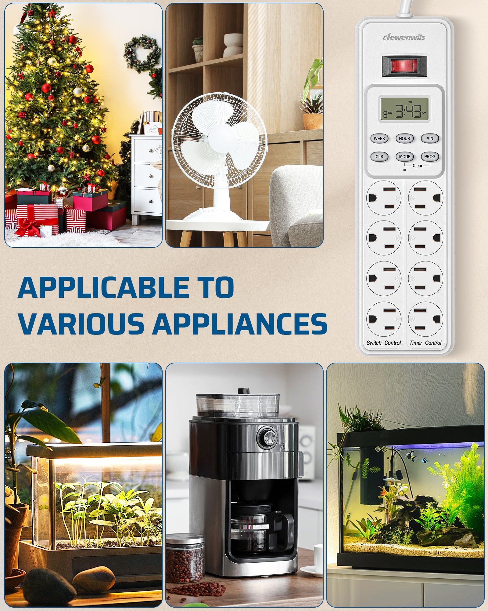 【Wide Application】Perfect for powering bearded dragon tanks, reptile tanks, aquariums, plants, grow lights, heat mats, or holiday lights—helps any timers for electrical outlets indoor automated on/off, to conserve energy and reduce electricity costs